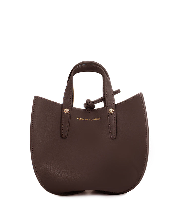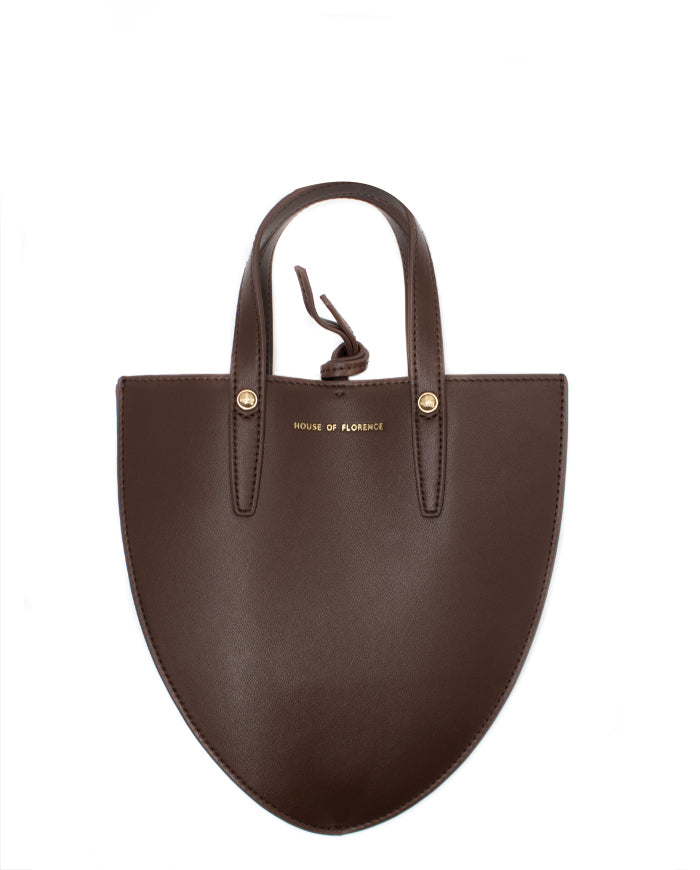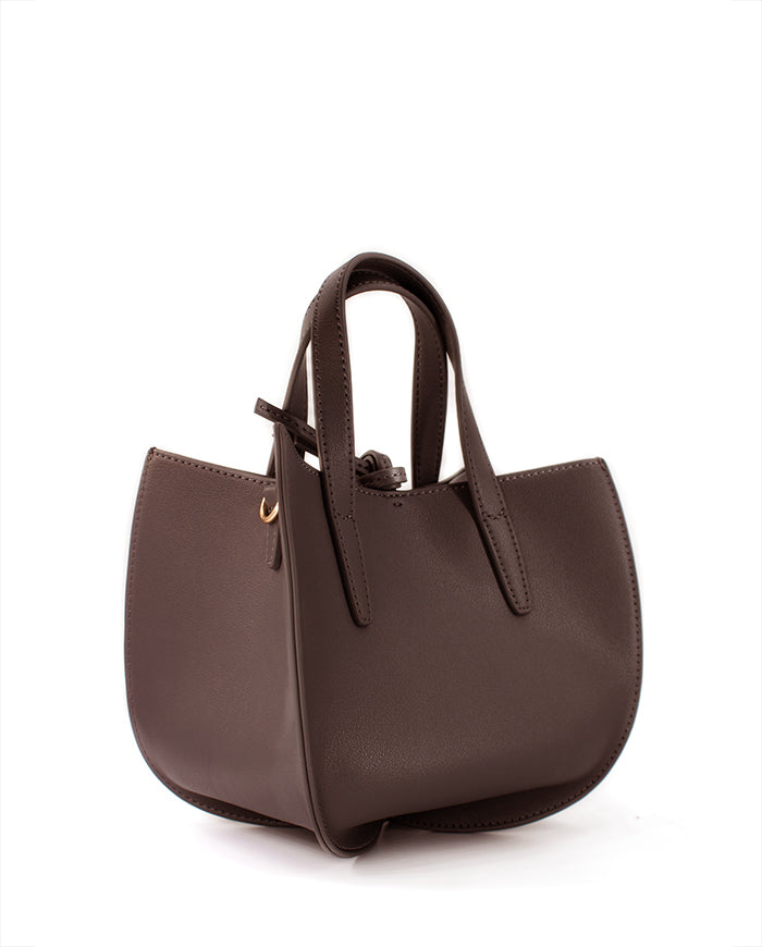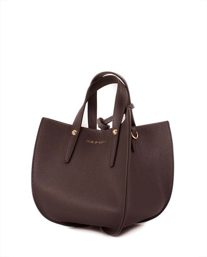 La versione ridotta della tote Gea di HOUSE OF FLORENCE. Questo mini modello è realizzato in pelle e conserva la capacità di piegarsi in modo piatto. Da portare a mano o a tracolla grazie alla tracolla aggiuntiva.