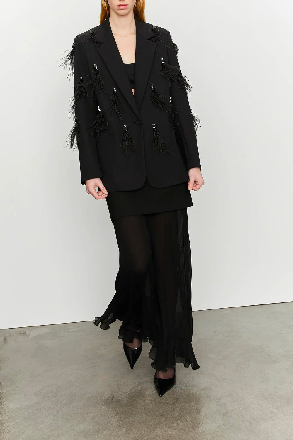 Blazer in cady elasticizzato con ricami di piume e pietre di ISABELLE BLANCHE PARIS.