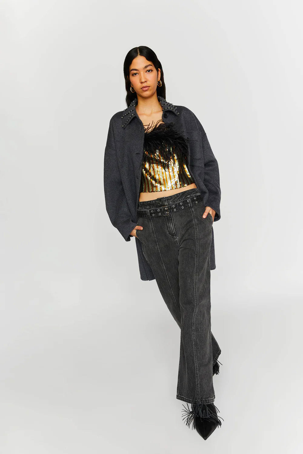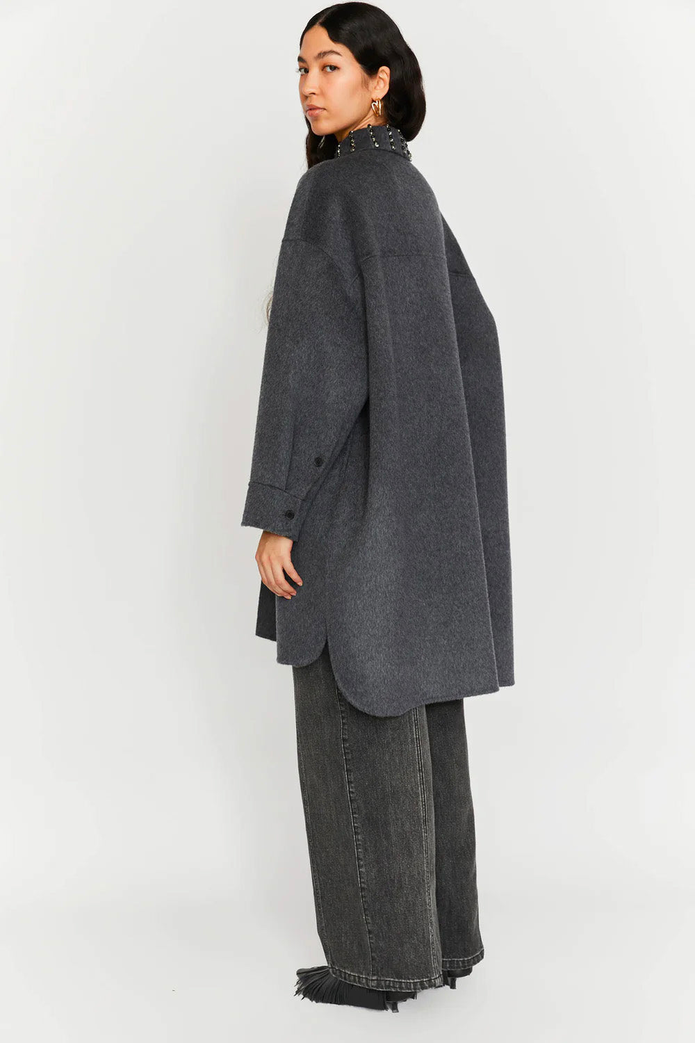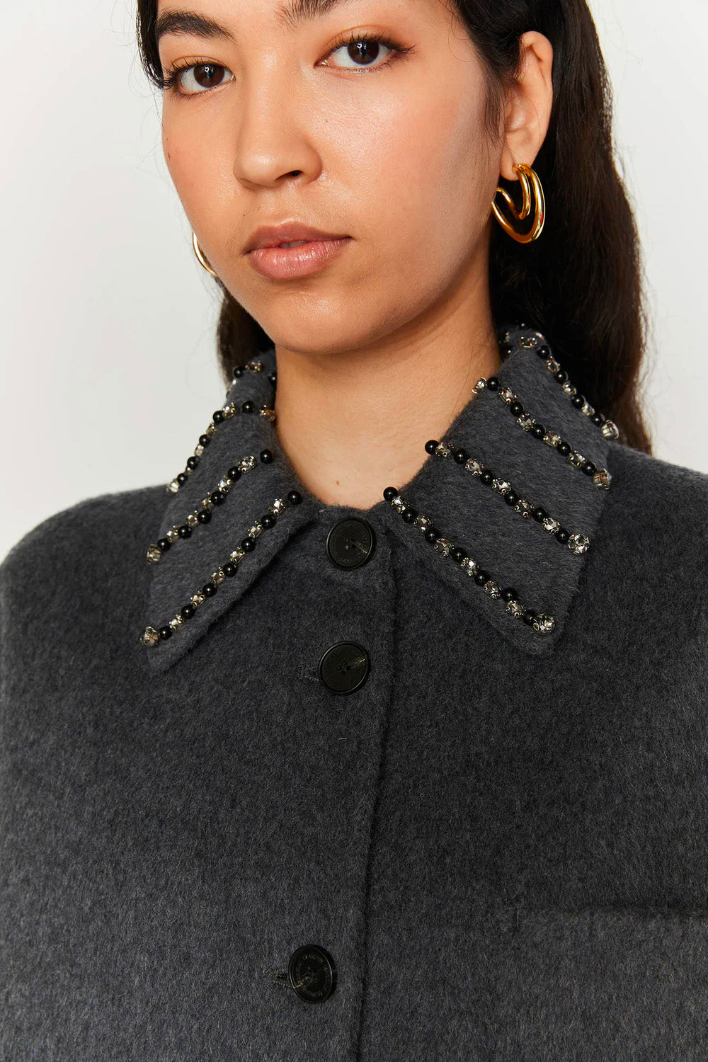 Cappotto chemisier in double di lana con ricamo sul collo di ISABELLE BLANCHE PARIS.