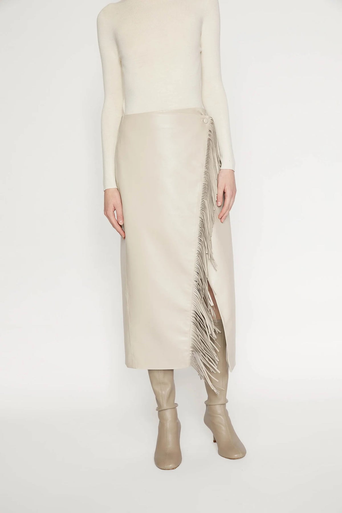 Gonna midi avvolgente in ecopelle con frange di ISABELLE BLANCHE PARIS.