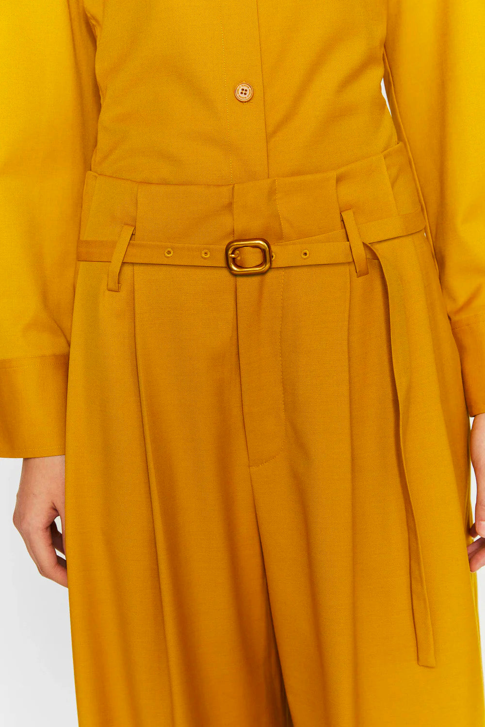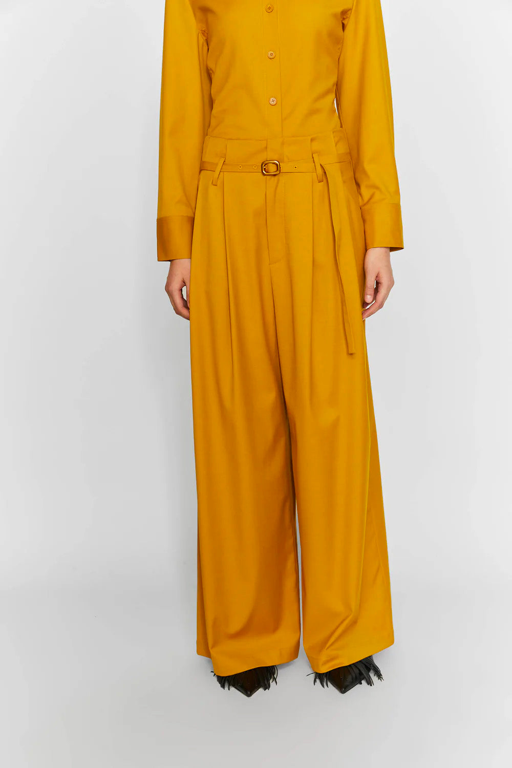 Pantaloni a vita alta con pieghe e cintura in vita di ISABELLE BLANCHE PARIS.