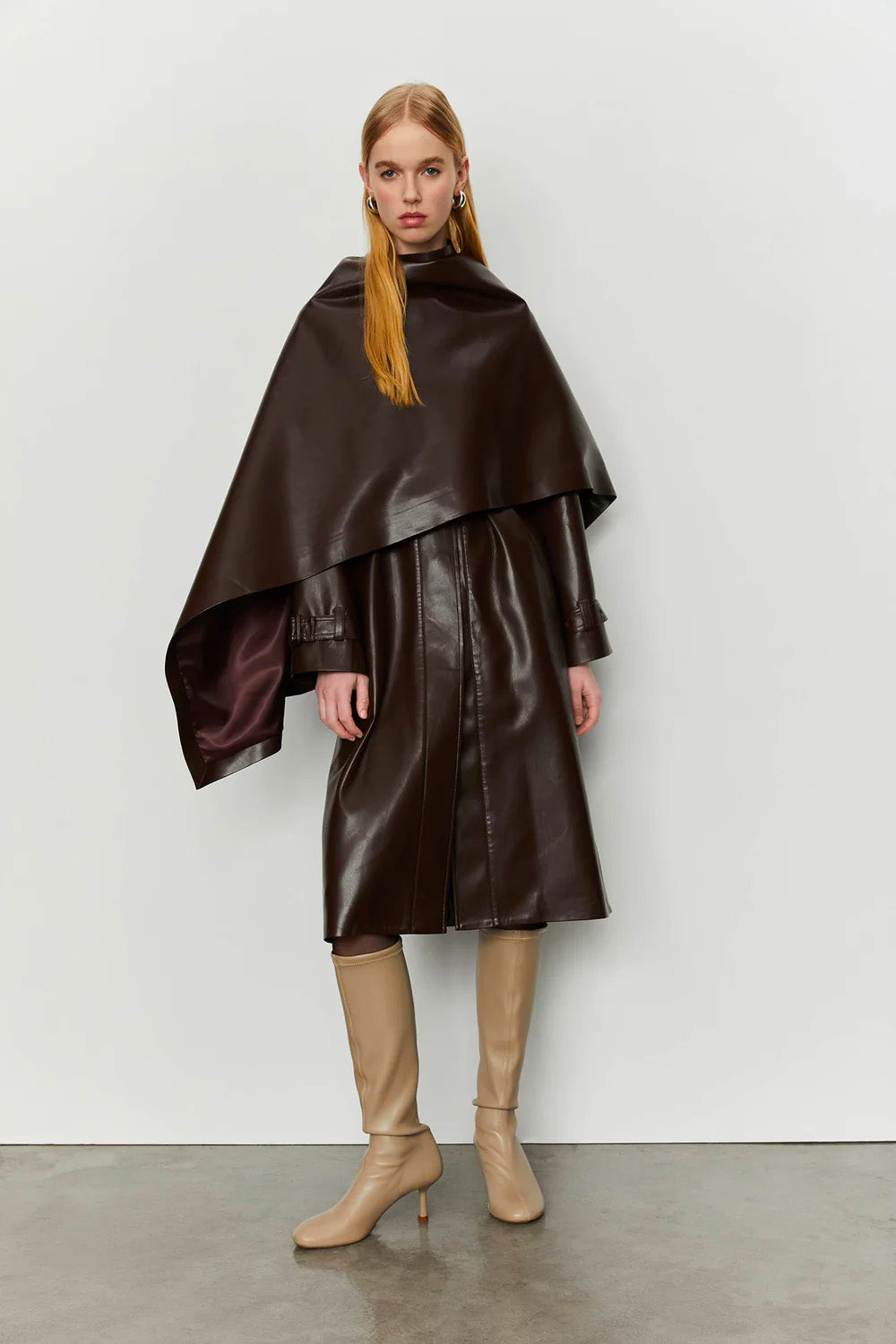 Spolverino in ecopelle con sciarpa di ISABELLE BLANCHE PARIS.