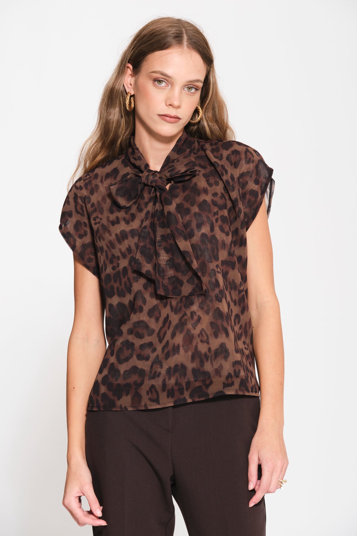 Blusa in creponne con fiocco in stampa animalier di KAOS JEANS.
