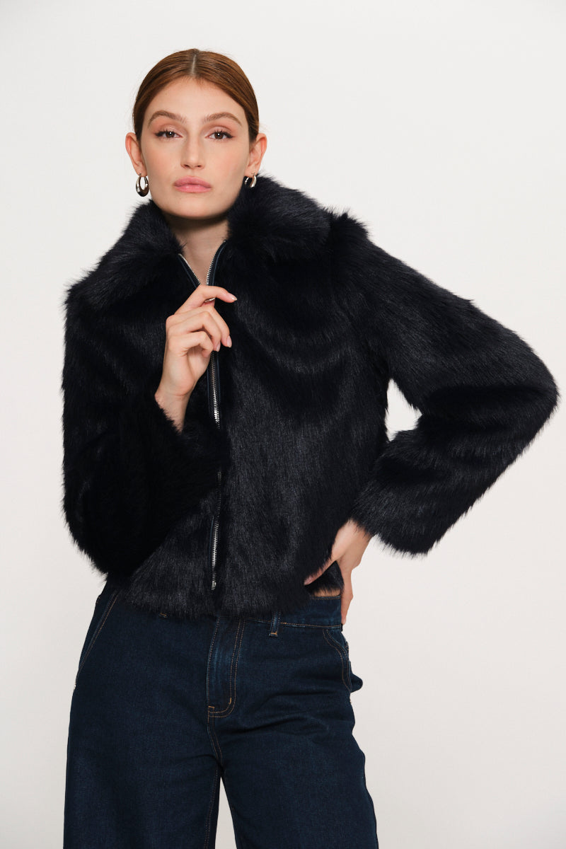 Bomber in eco pelliccia con zip di KAOS JEANS.