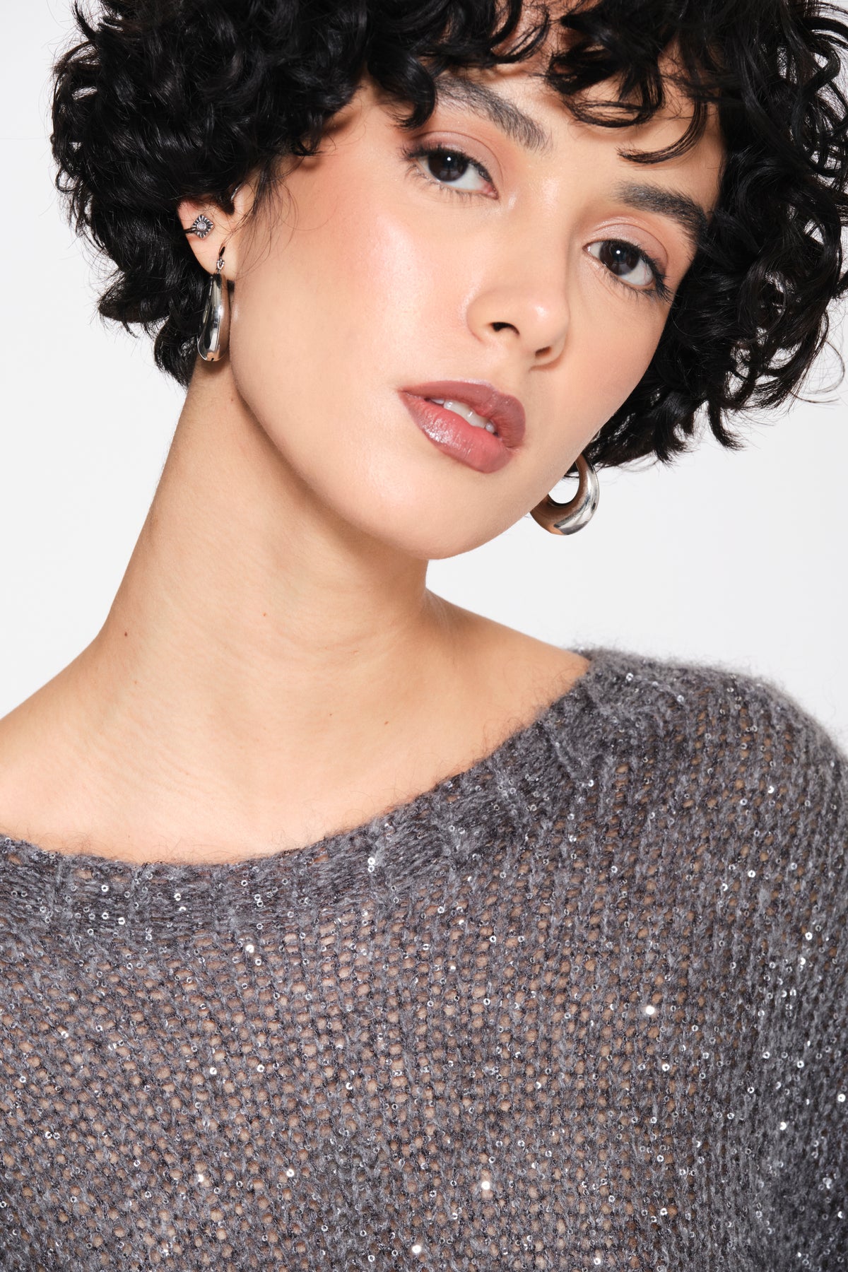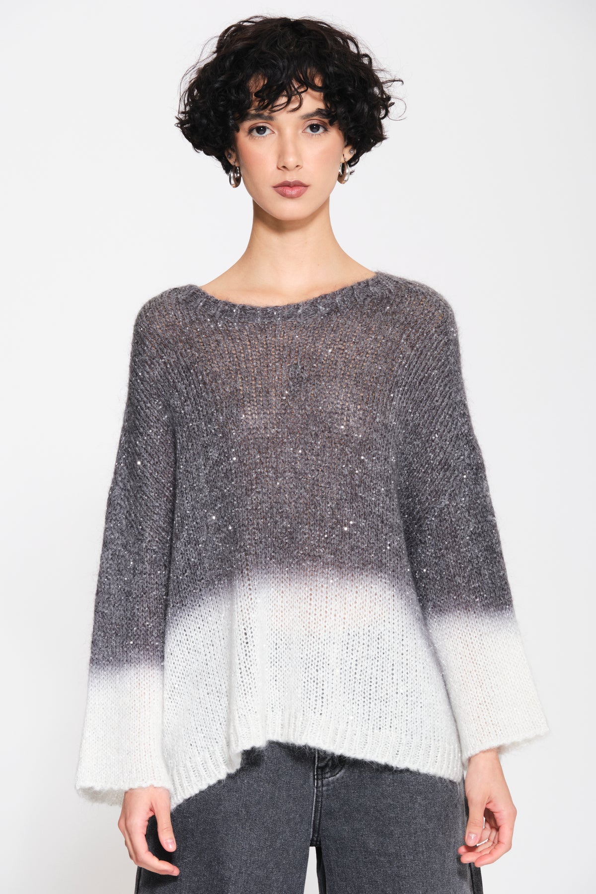 Maglia girocollo in mohair con paillettes di KAOS JEANS.