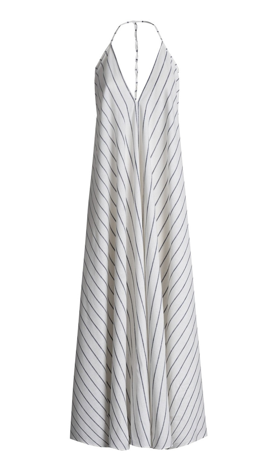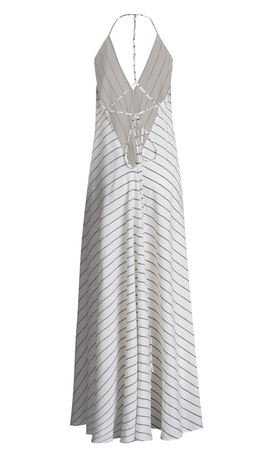 Abito The Eivissa Barrè in lino a righe di Nineminutes. Con incrocio posteriore.