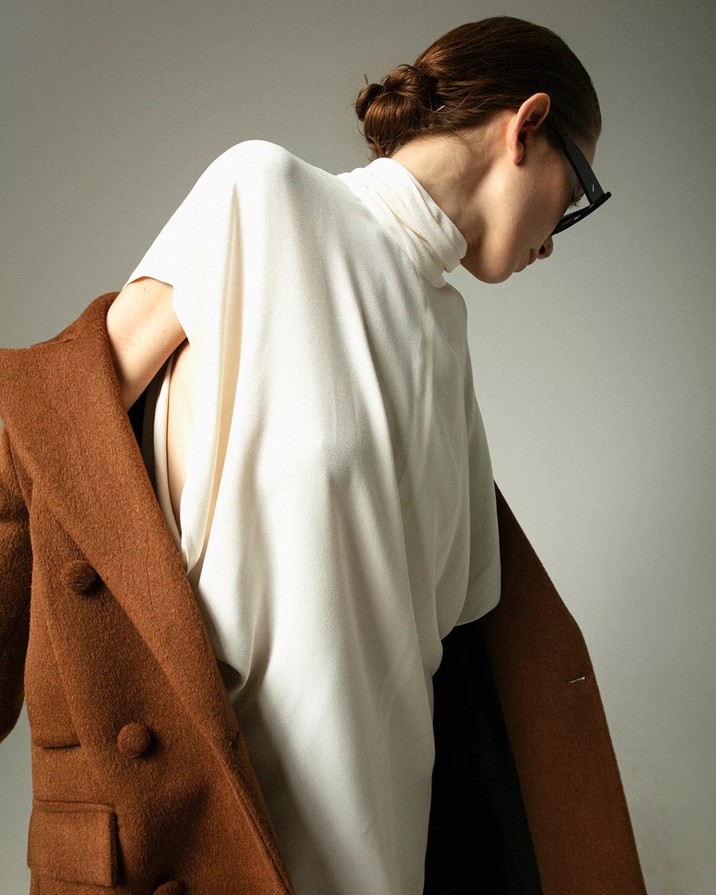 Un capo versatile che funziona come abito elegante da giorno con stivali o mocassini, oppure in chiave serale con tacco e accessori luminosi. Un abito fluido che unisce minimalismo e ricercatezza.