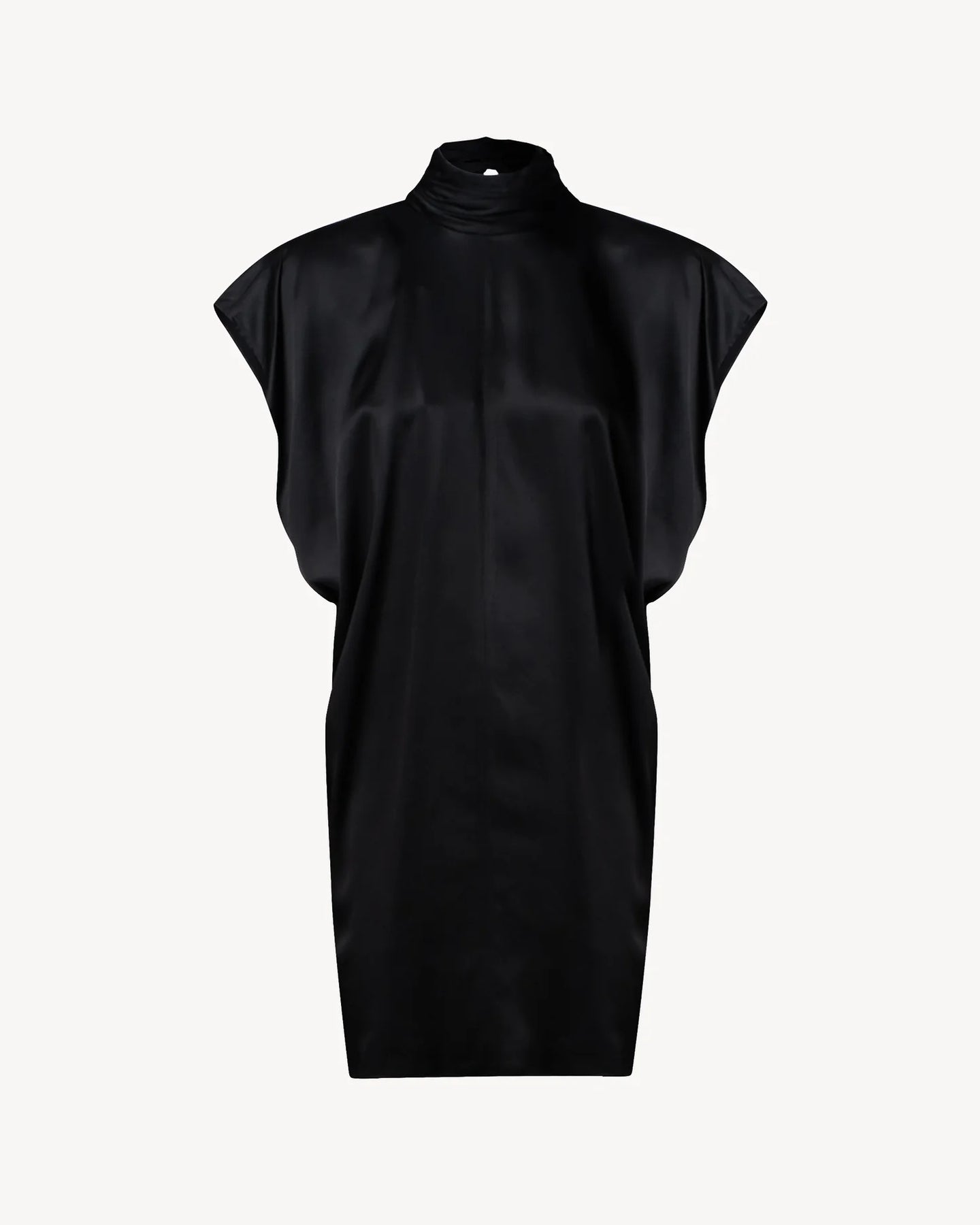 Abito The Ella corto in satin, manica corta larga e collo alto di NINEMINUTES. Chiusura posteriore con zip.