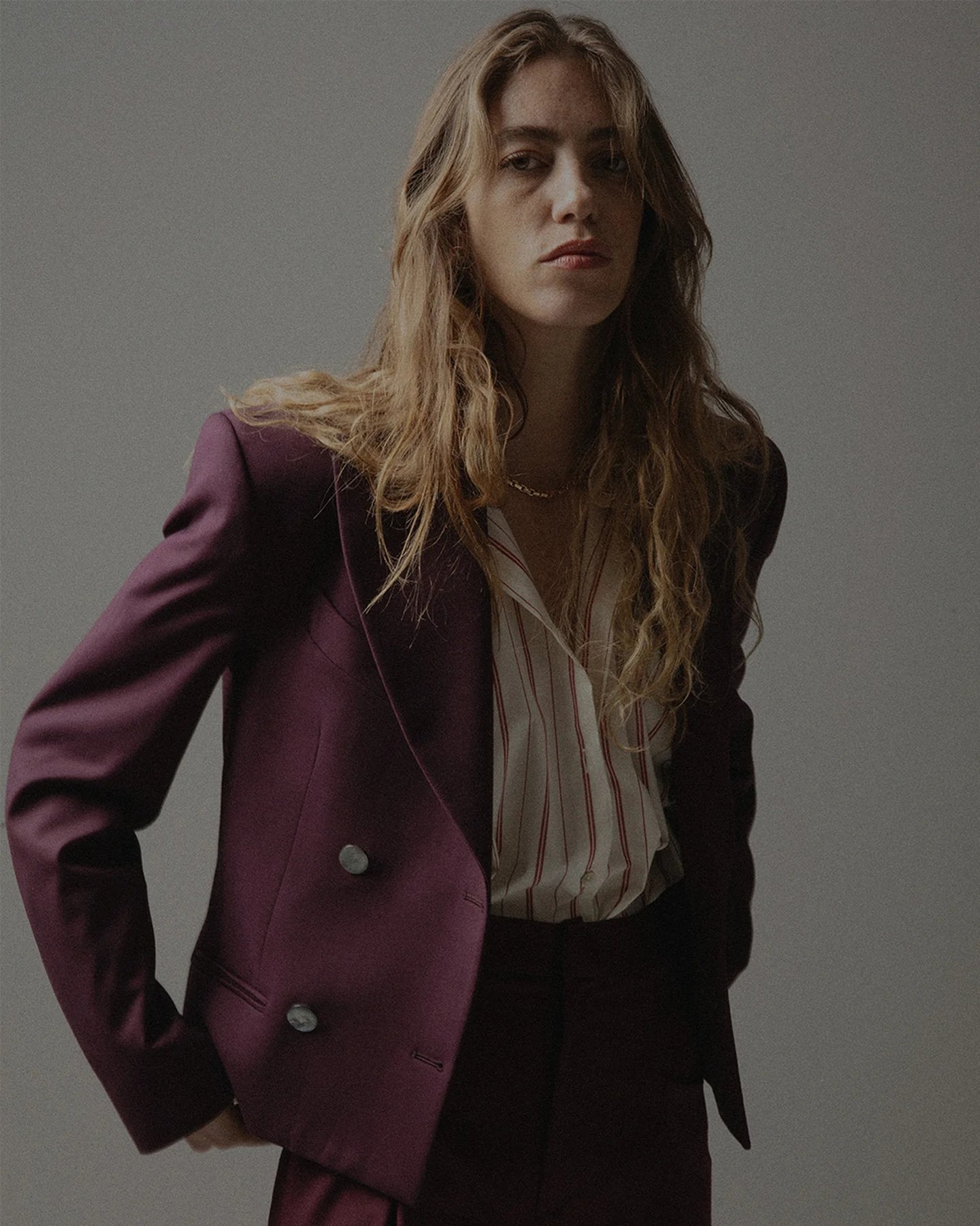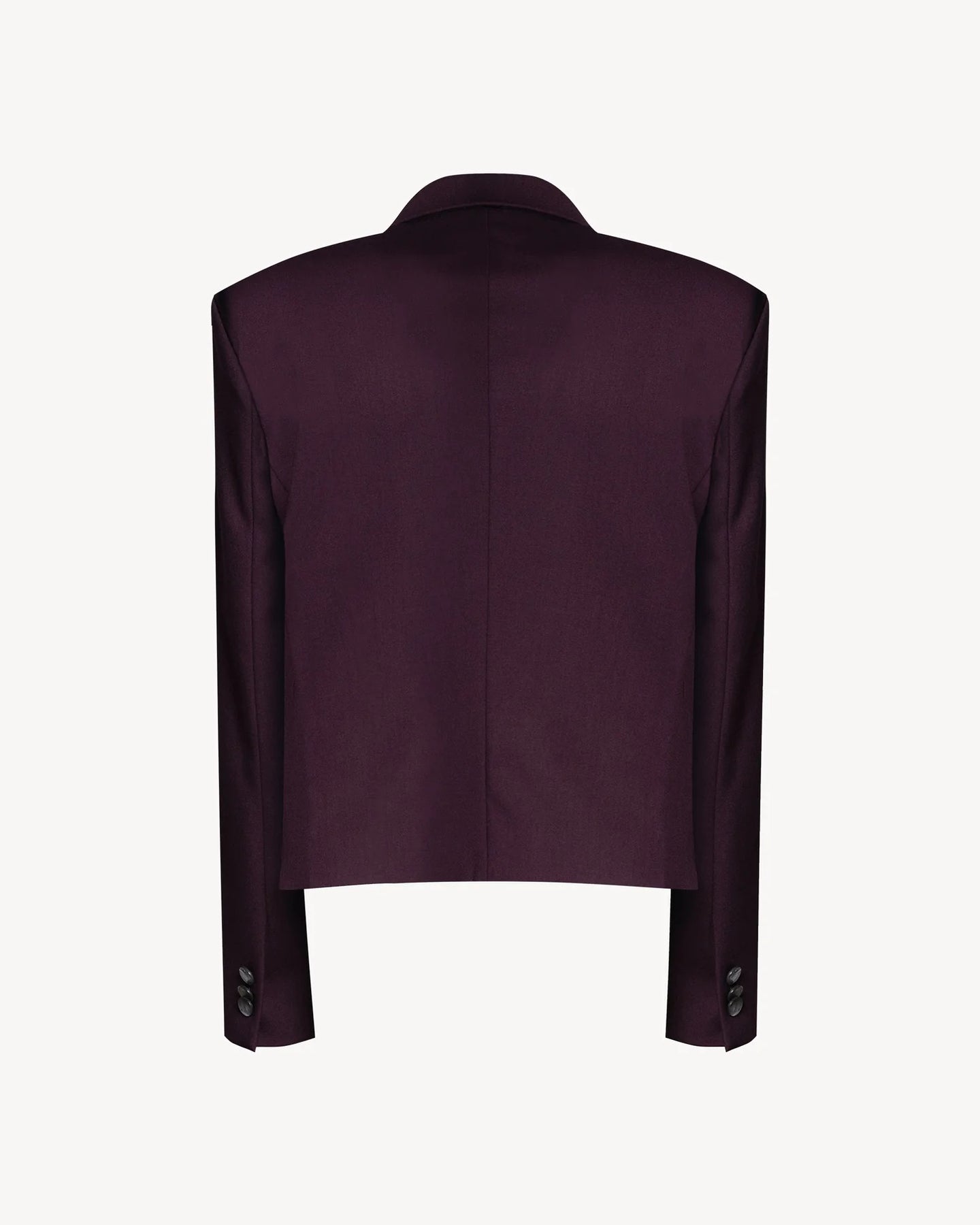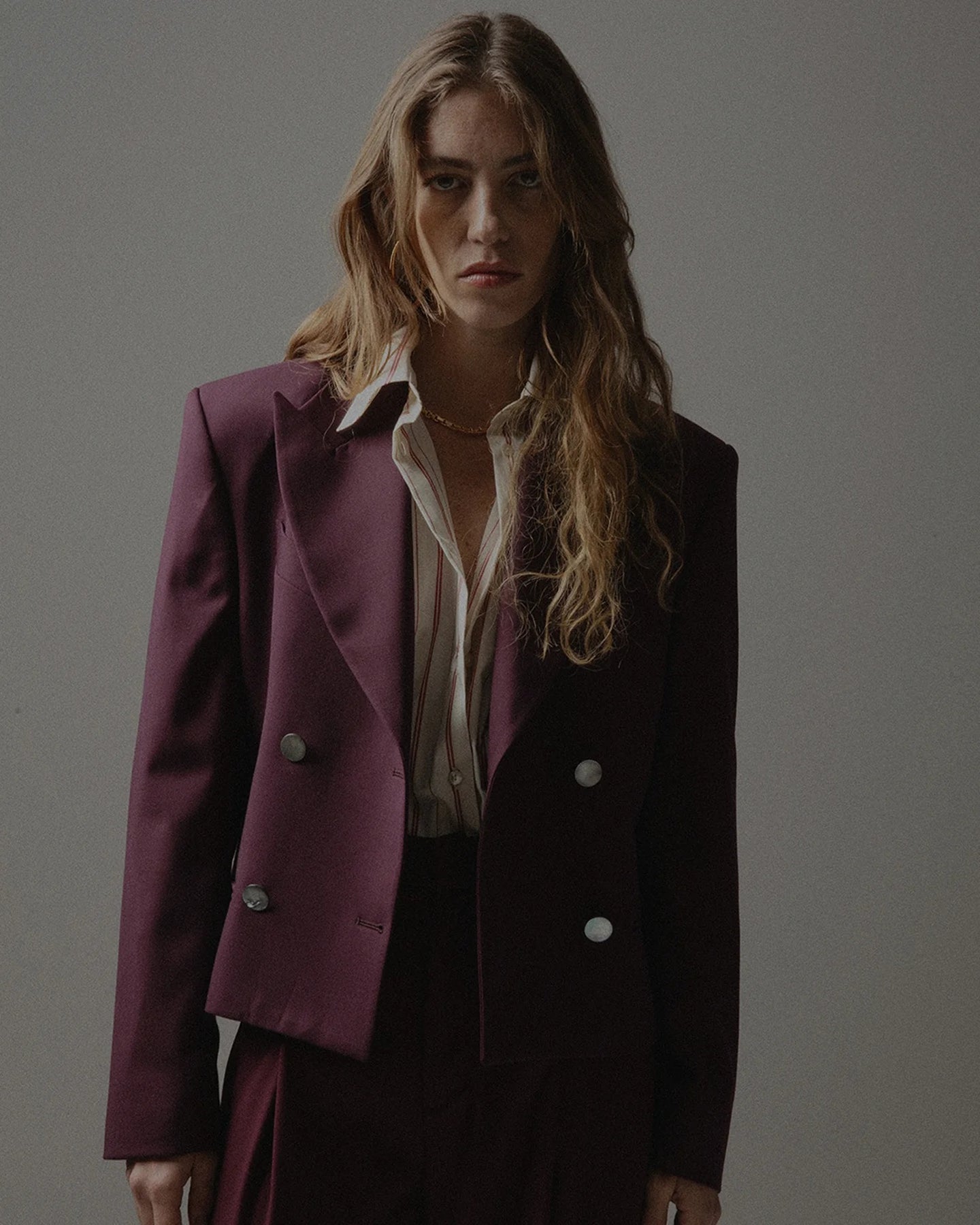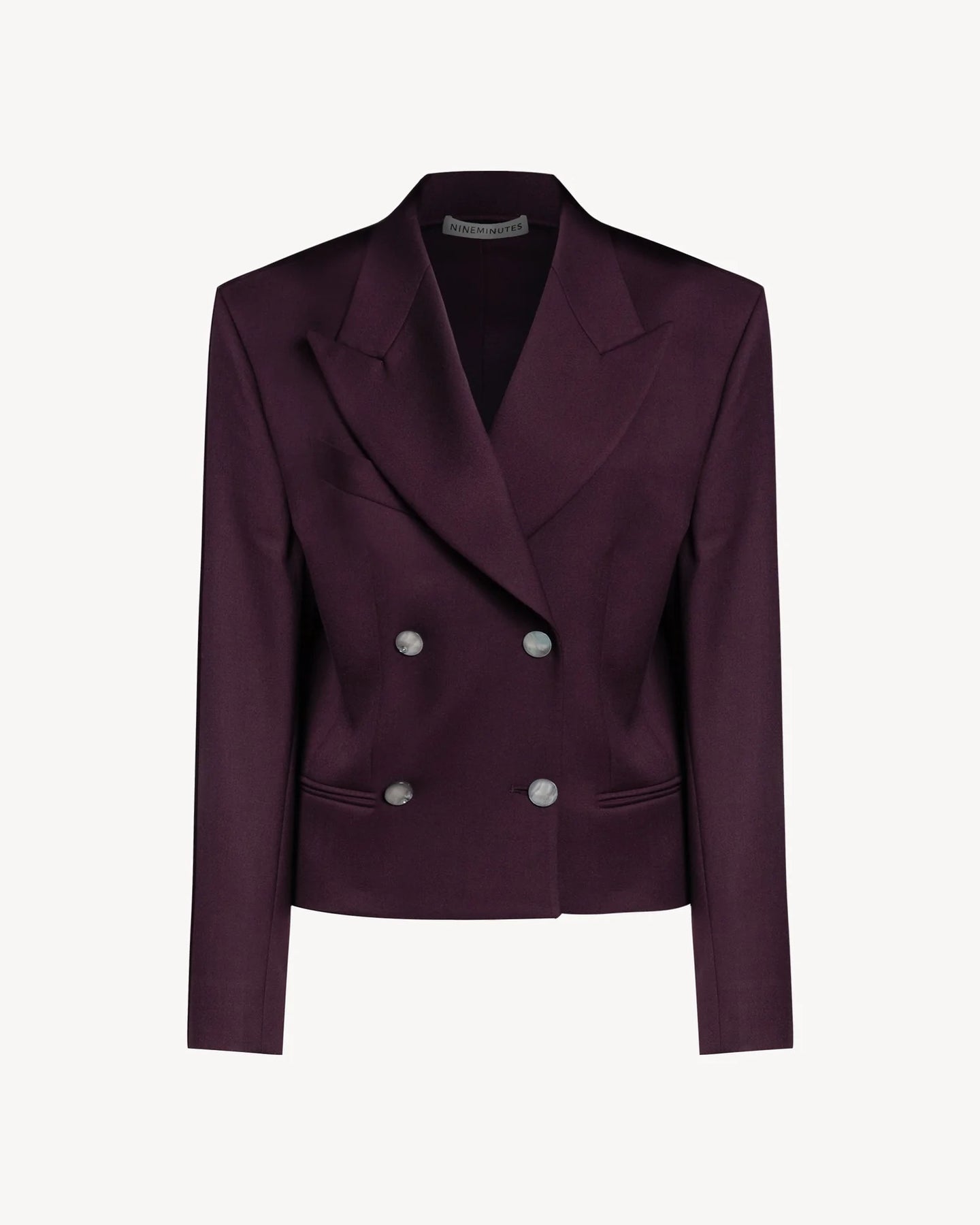 Blazer crop The Revolver in flanella chiusura doppiopetto, taglio sartoriale corto e linea strutturata di NINEMINUTES.