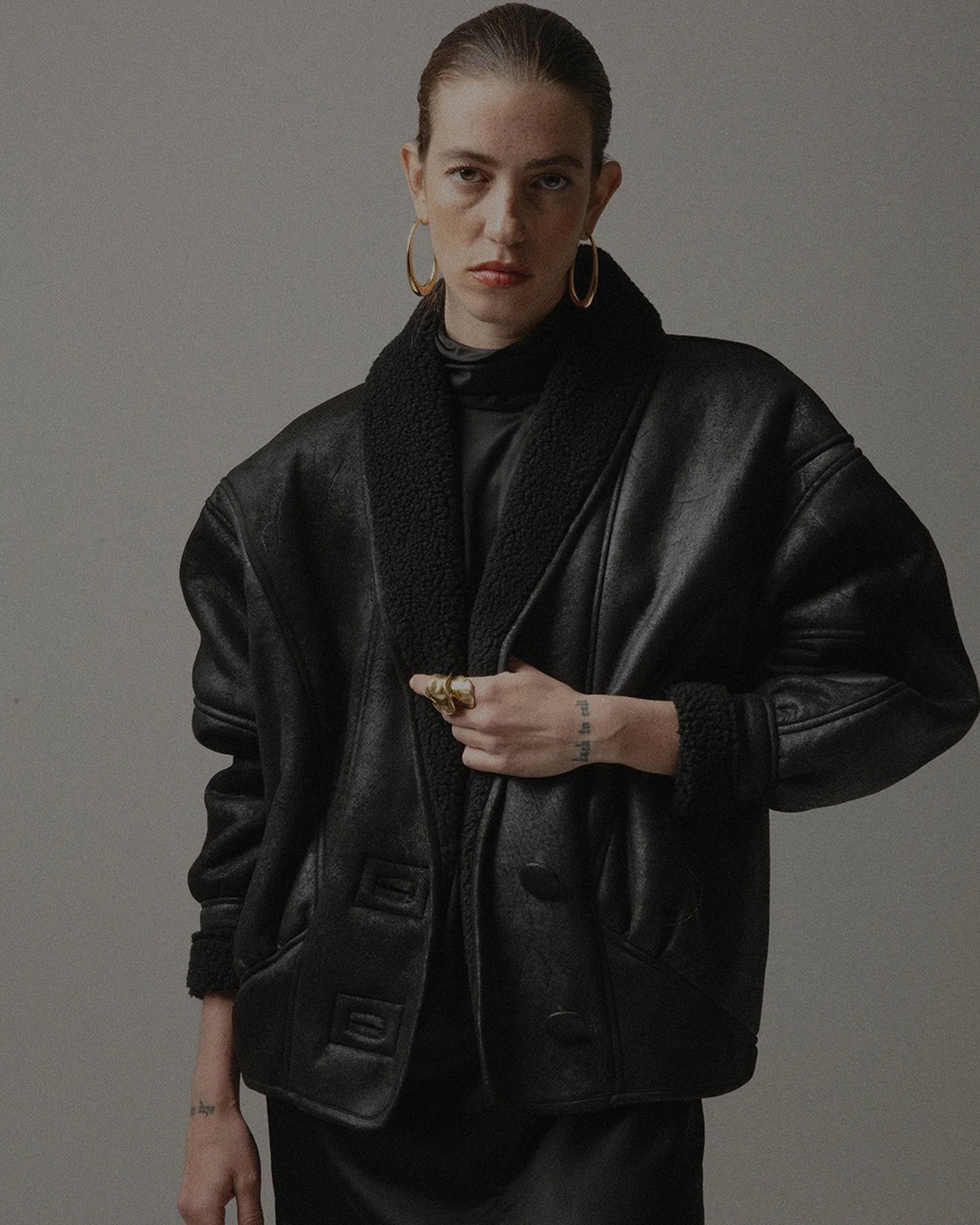 Eco-montone lunghezza standard ispirato al best seller iconico di Nineminutes, il The Classic Shearling, reinterpretato in una versione più corta.