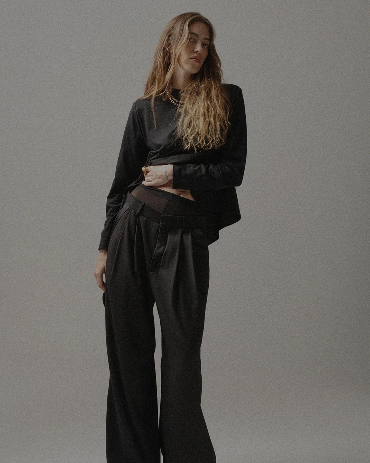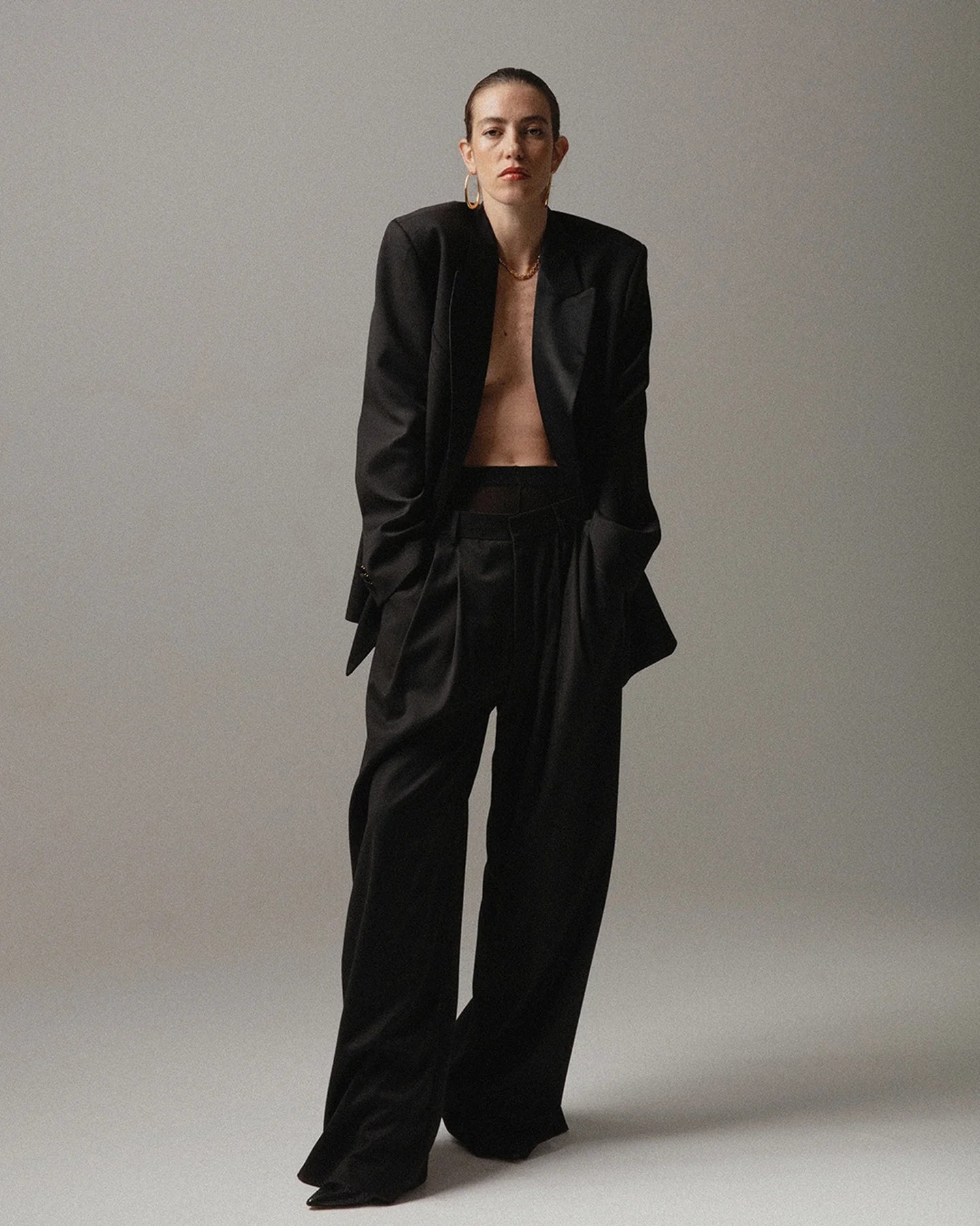 Pantaloni molto ampi The Submarine Pence di NINEMINUTES in tessuto smoking, con vita regolare e caduta morbida.