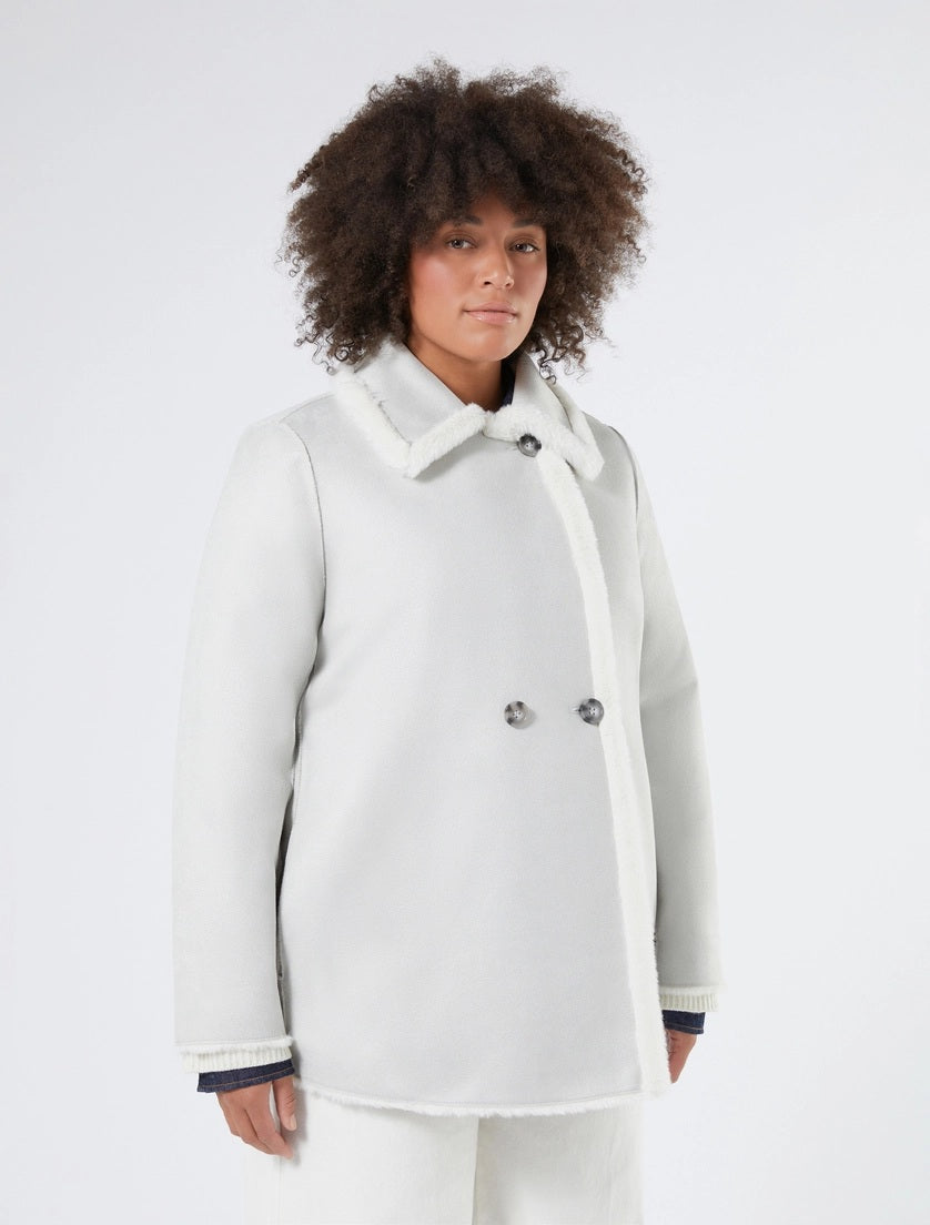 Caban reversibile in tessuto morbido scamosciato da un lato e dalla texture soffice dall'altro di PERSONA by MARINA RINALDI.