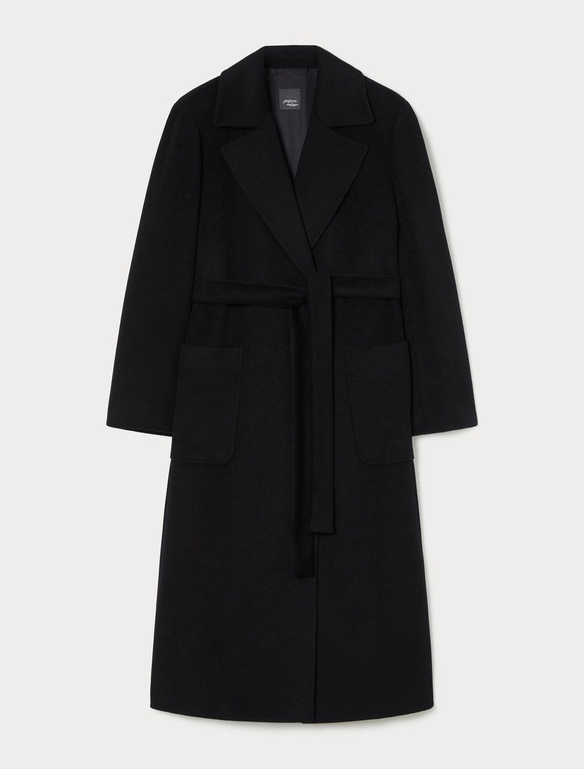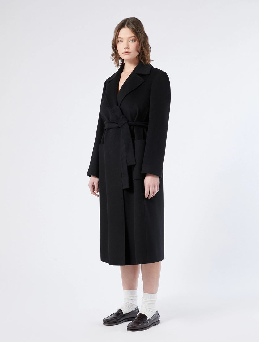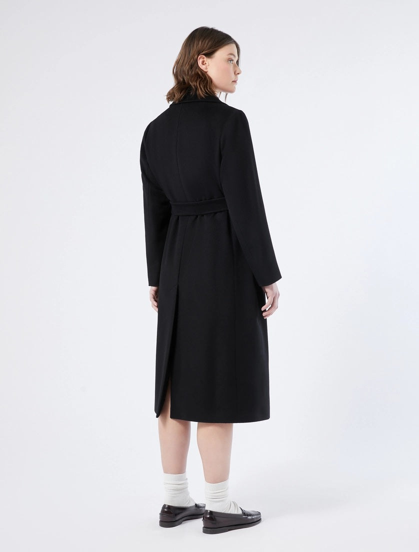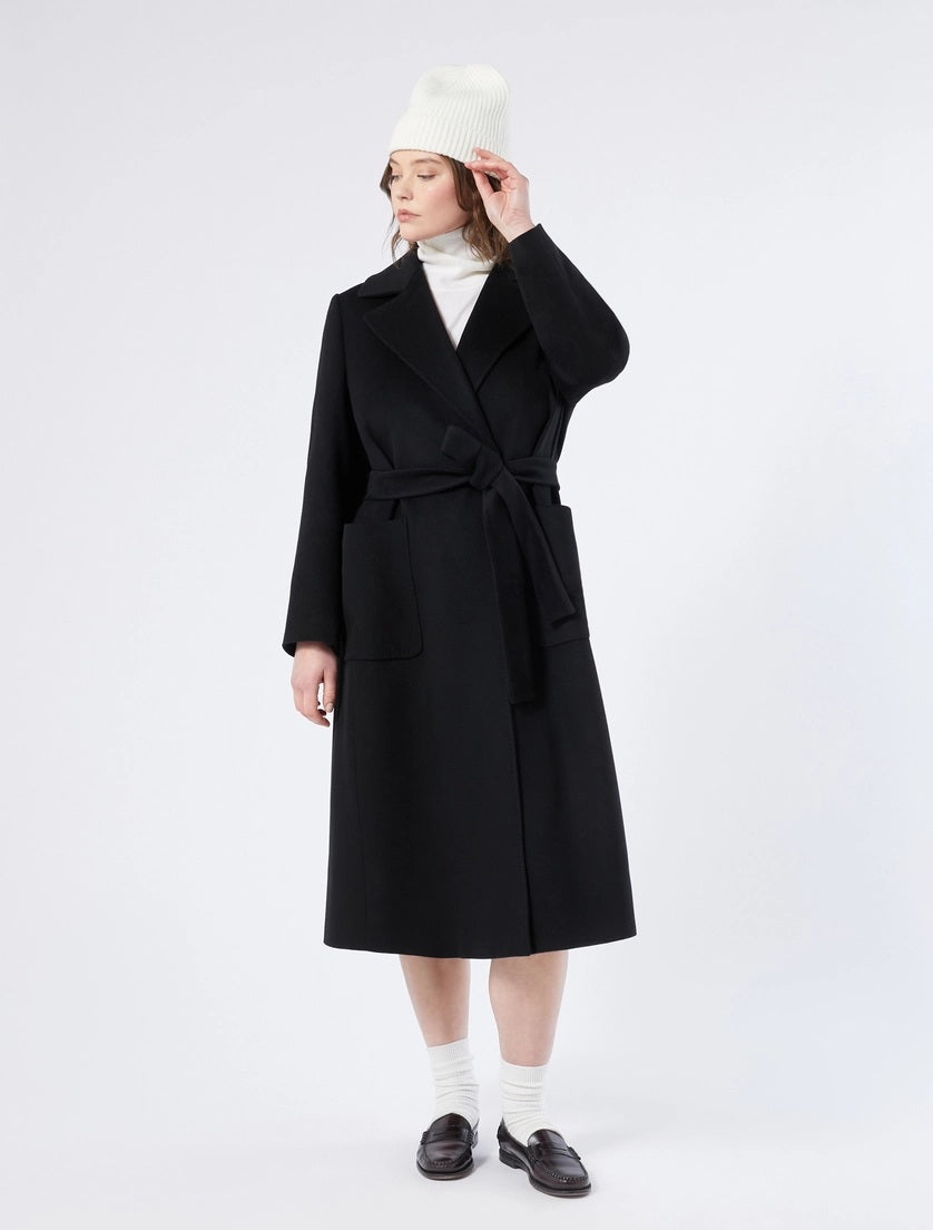 Cappotto in drap di pura lana rifinito da puntino sartoriale cucito a mano nei dettagli. Lo puoi regolare in vita con la cintura in coordinato.