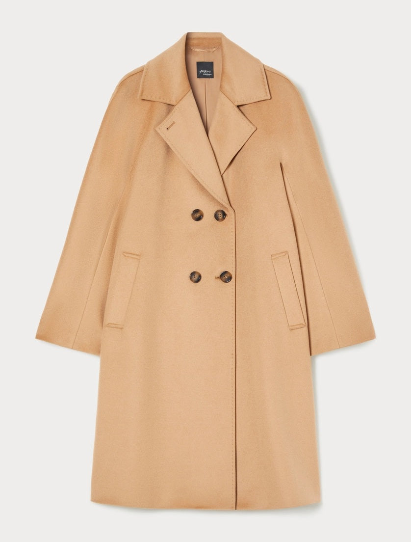 Cappotto in drap di pura lana rifinito da puntino sartoriale cucito a mano al collo e davanti di PERSONA by MARINA RINALDI.