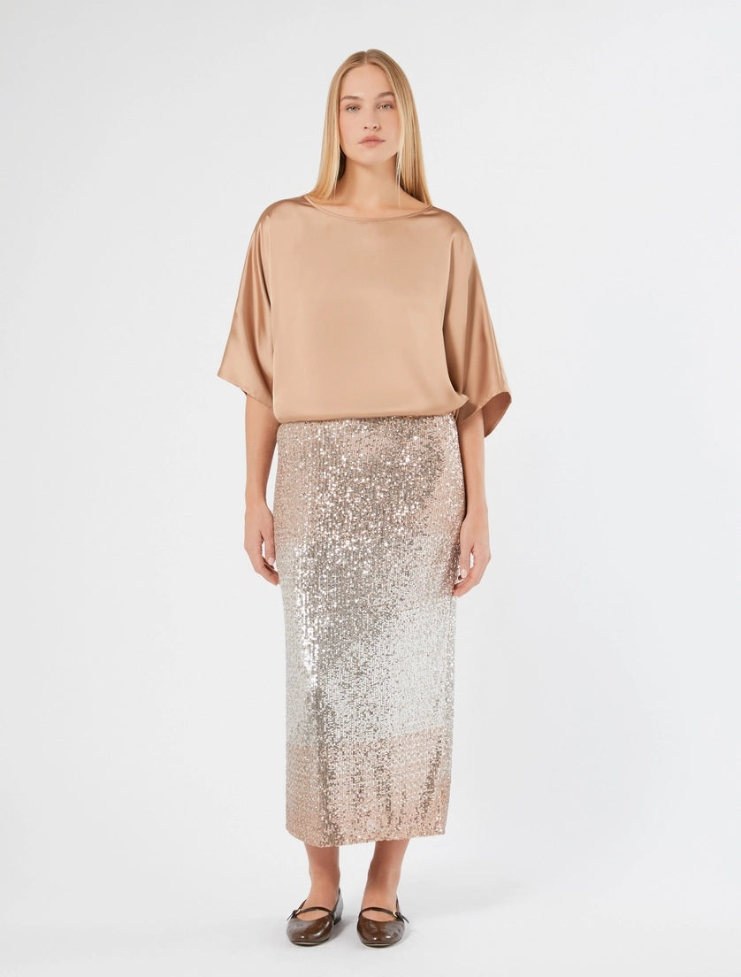 Gonna longuette a tubino con paillettes sfumate ed elastico in vita di PERSONA by MARINA RINALDI.