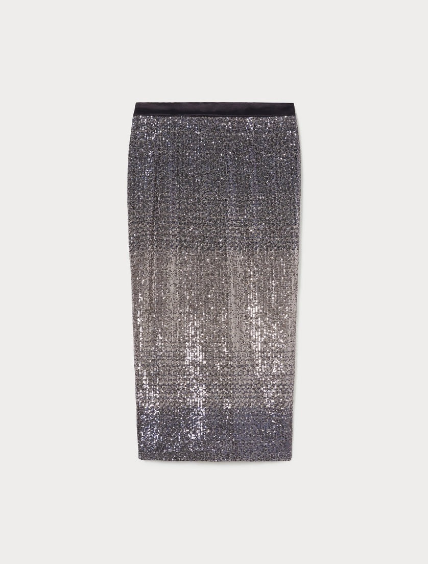 Gonna longuette a tubino con paillettes sfumate ed elastico in vita di PERSONA by MARINA RINALDI.