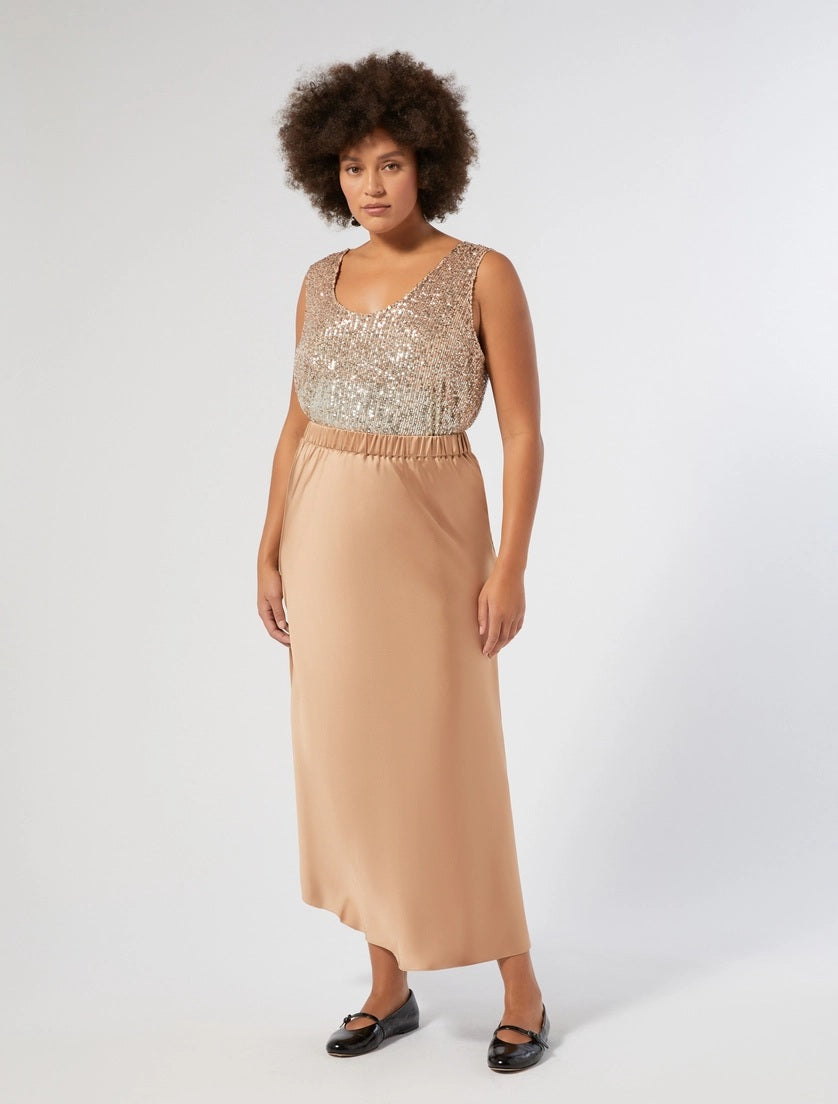 Gonna lunga in raso, dalla linea ampia di PERSONA by MARINA RINALDI.