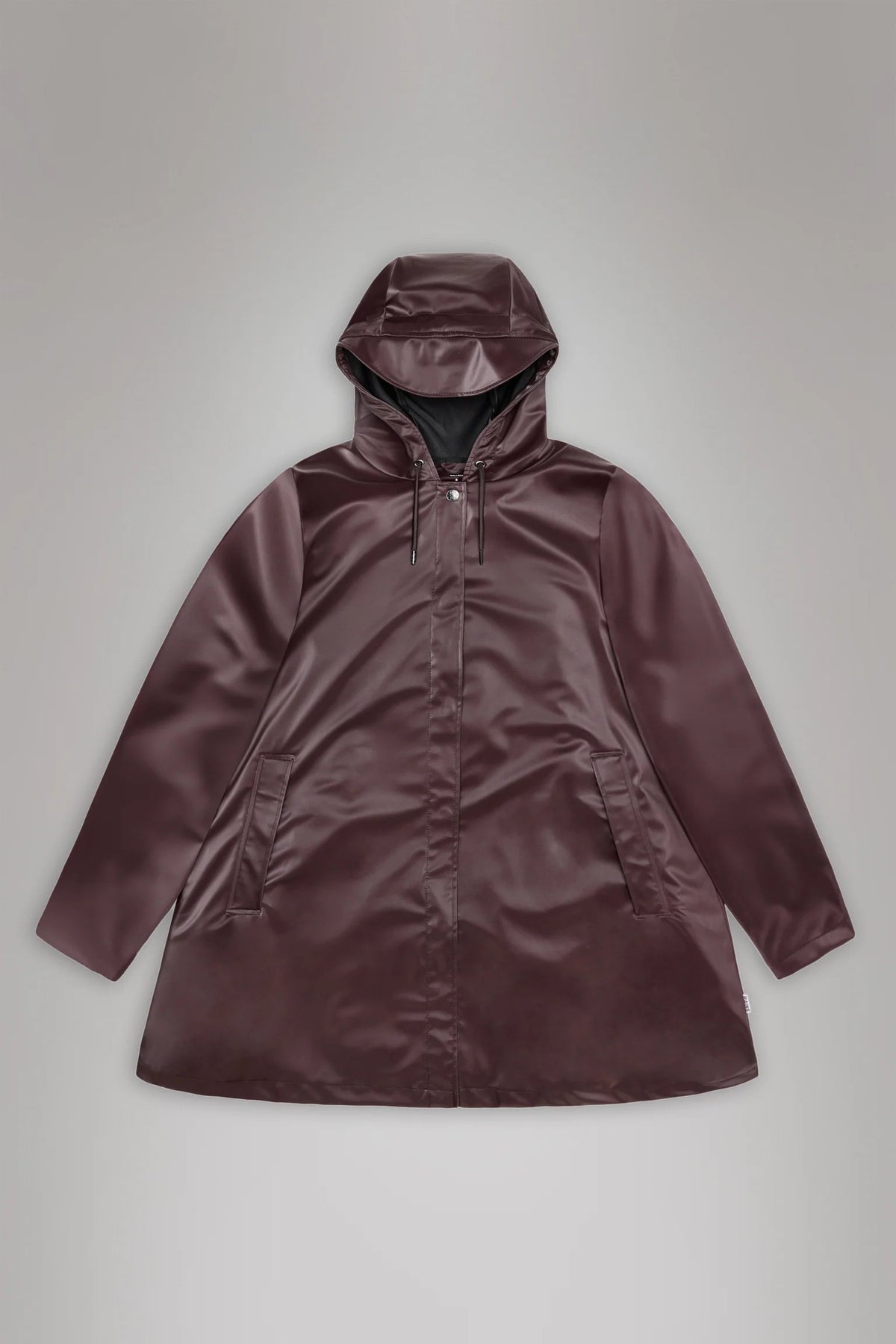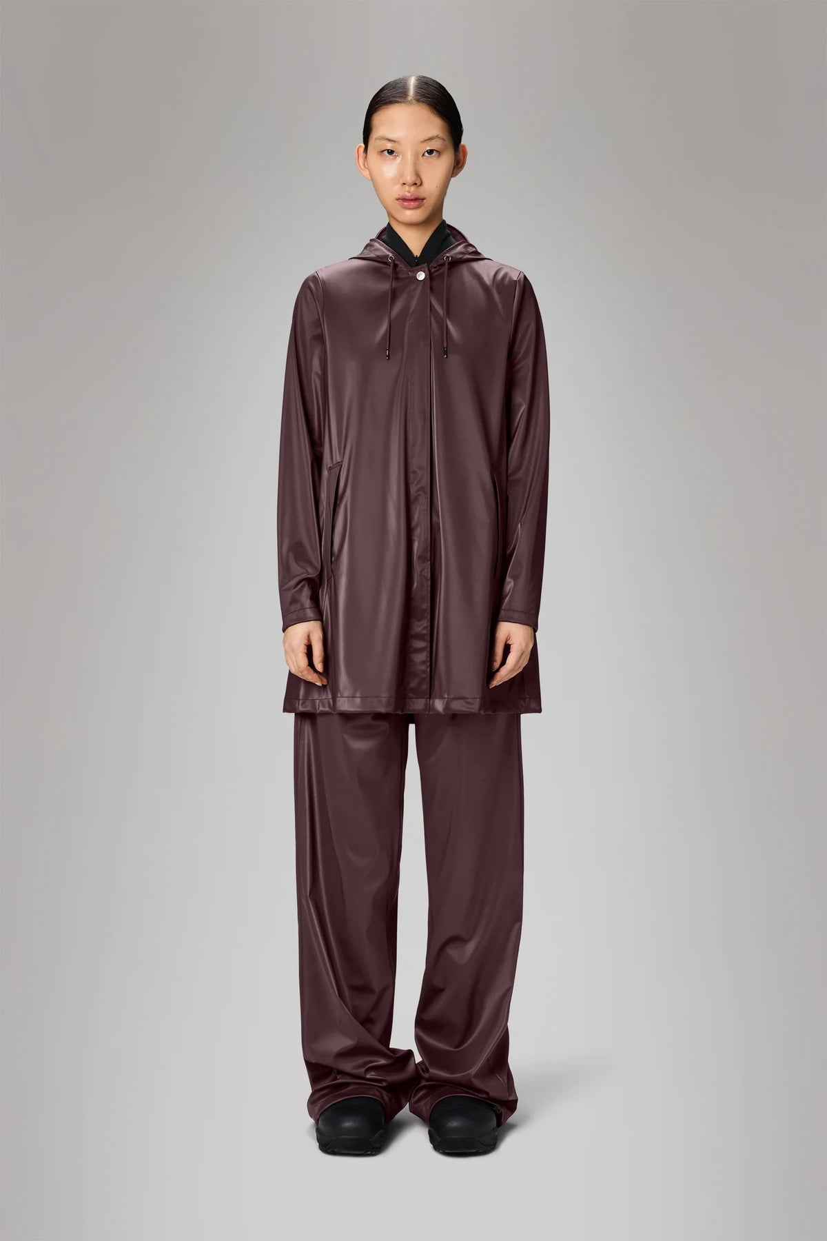 La A-Line W Jacket è realizzata nell'iconico tessuto PU di Rains e presenta cuciture nastrate, che rendono la giacca resistente all'acqua e al vento. Il finish è leggero, morbido al tocco