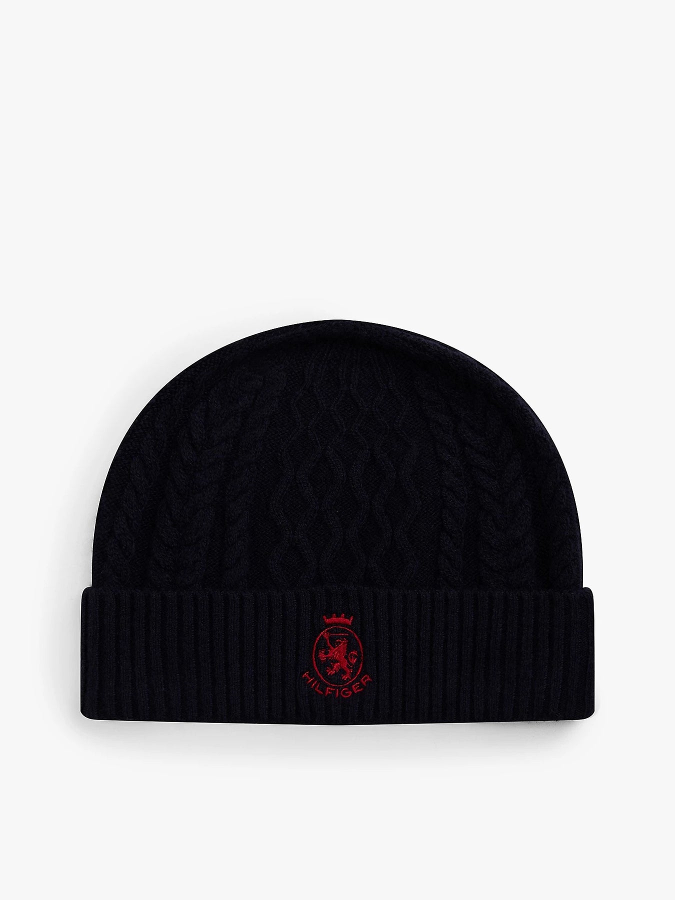 Berretto in maglia intrecciata con stemma TH di TOMMY HILFIGER.