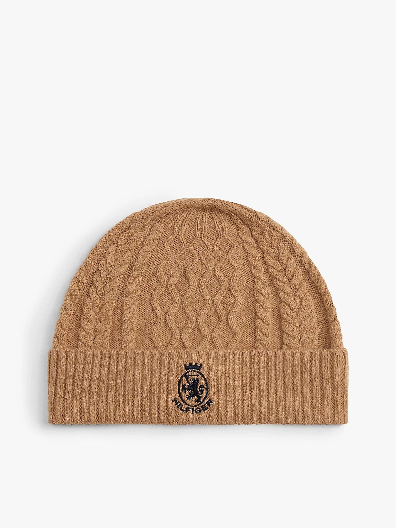 Berretto in maglia intrecciata con stemma TH di TOMMY HILFIGER.