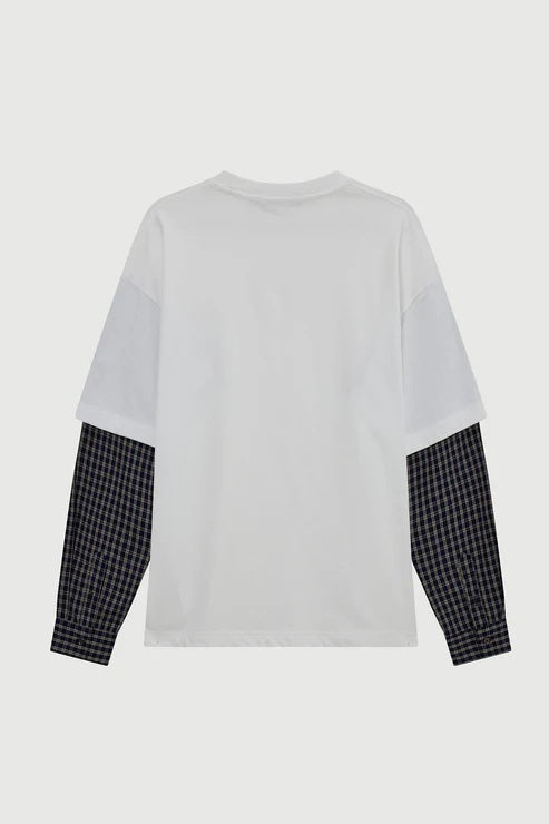 Maglia a maniche lunghe di ACUPUNCTURE, realizzata in morbido cotone, dall'aspetto rilassato e vissuto. Le maniche a strati con motivo a quadri a contrasto aggiungono profondità e texture visiva.