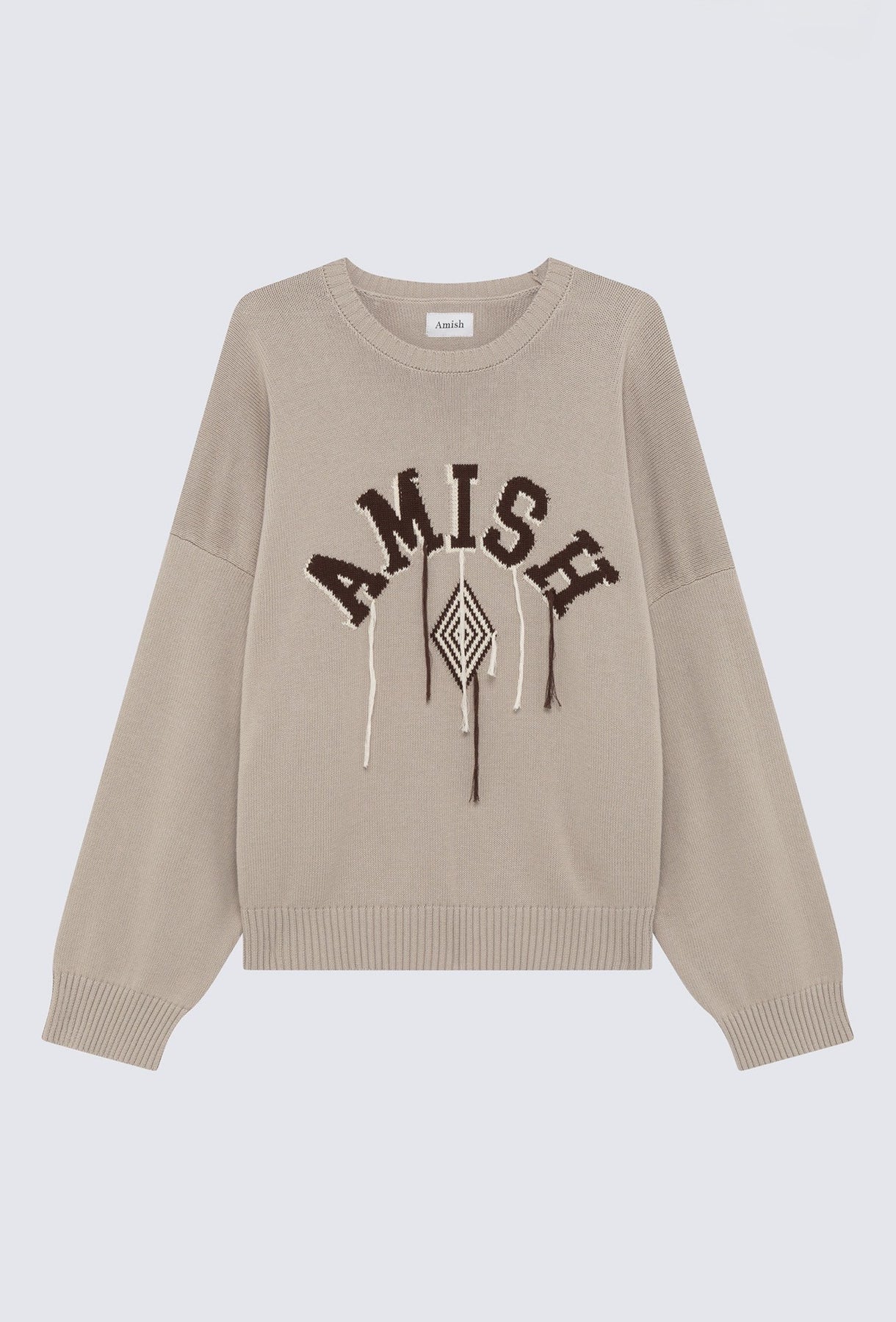 Maglia girocollo in tessuto stone tinta unita con logo AMISH jacquard sul fronte e impunture laterali a vista.