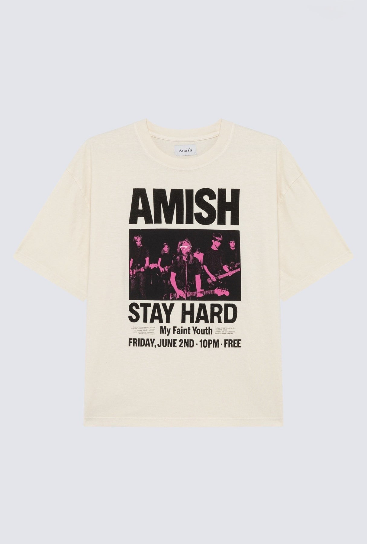 T-shirt girocollo in jersey di cotone dyed di AMISH con stampa Stay Hard sul fronte.