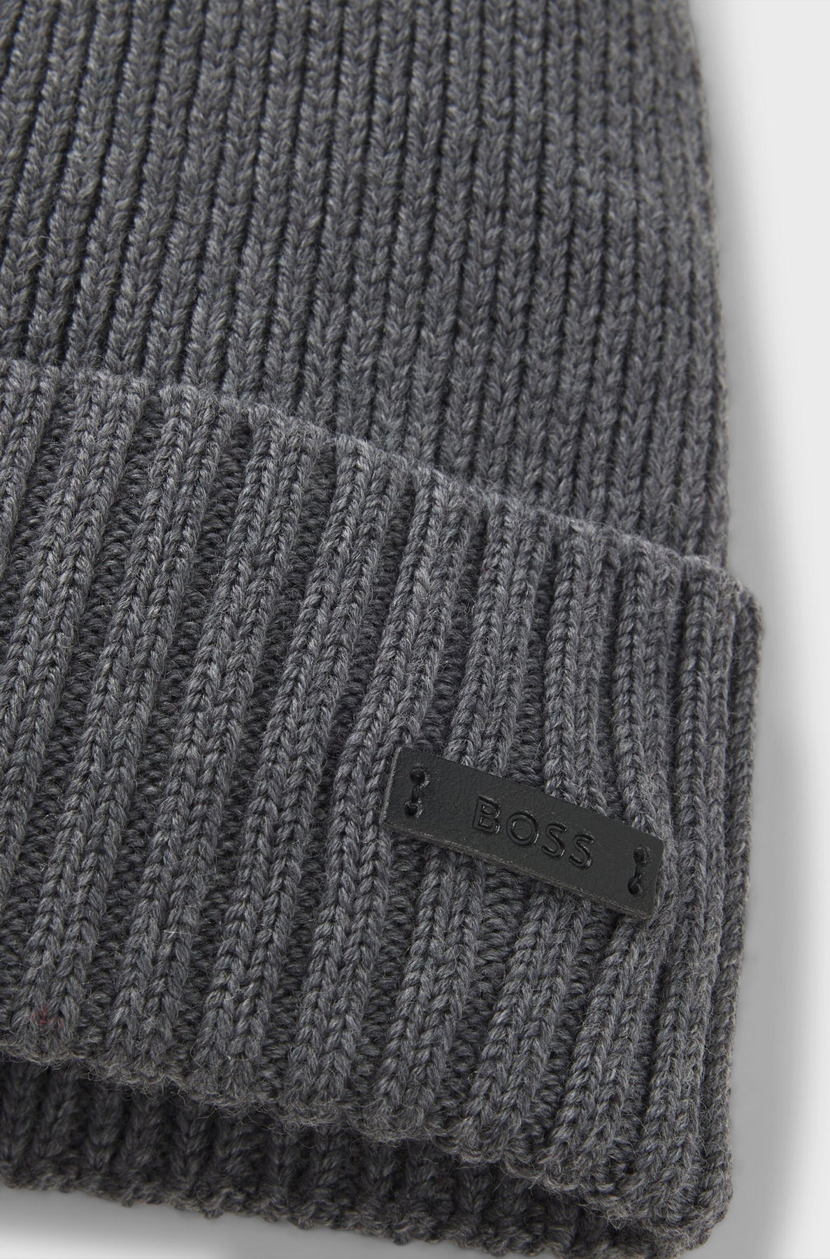 Berretto in lana vergine con targhetta con logo BOSS.