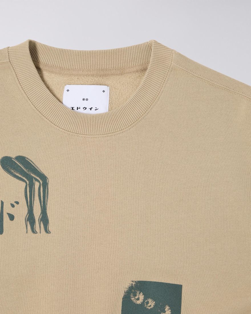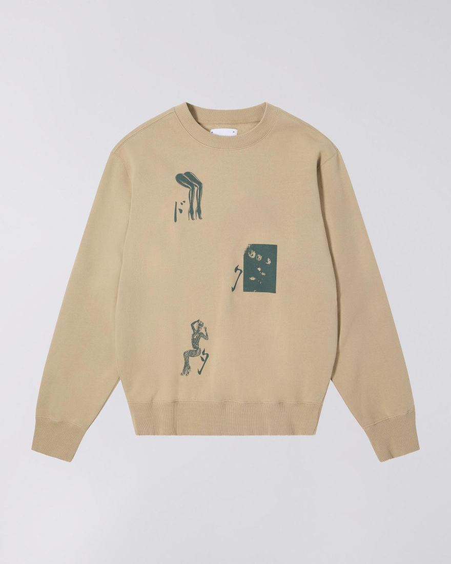 Felpa girocollo Dokuta Desire di EDWIN. Progettata per una vestibilità comoda e casual, con vestibilità regolare. Realizzata in pesante felpa non garzata da 350 g/m² (100% cotone), presenta stampe sul davanti e sul retro ed è rifinita con colletto, polsini e orlo inferiore a coste.