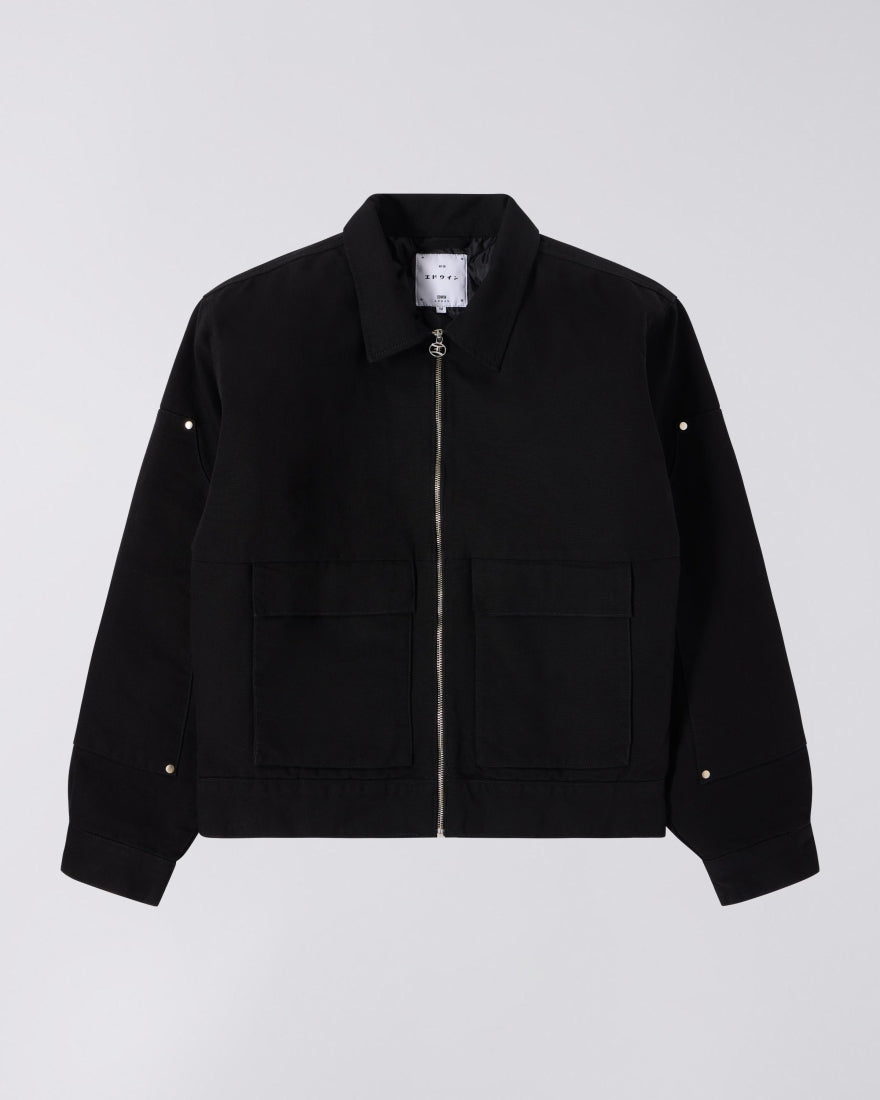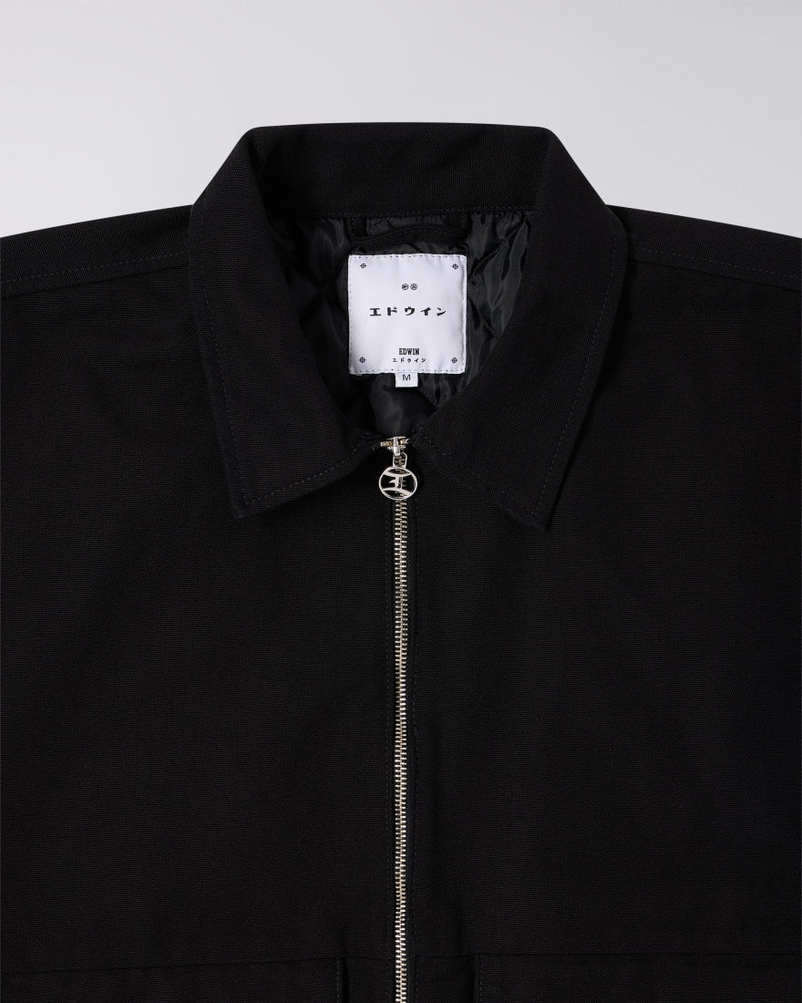 Giubbotto Work Dogma di EDWIN è una giacca dalla vestibilità regolare realizzata in tela. Presenta una chiusura frontale con cerniera personalizzata, due bottoni su ogni polsino, due tasche applicate sul davanti, toppe da lavoro sulle maniche e un'etichetta Edwin sulla tasca anteriore.
