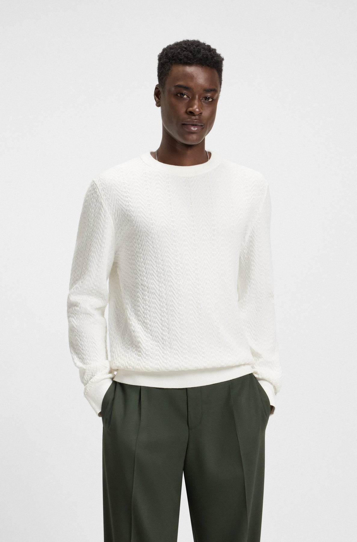 Maglione in cotone con lavorazione a spina di pesce di HUGO.
