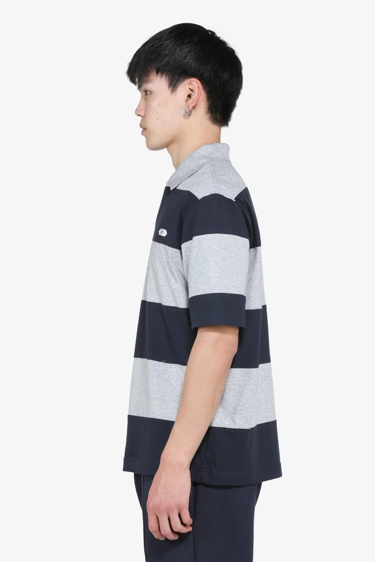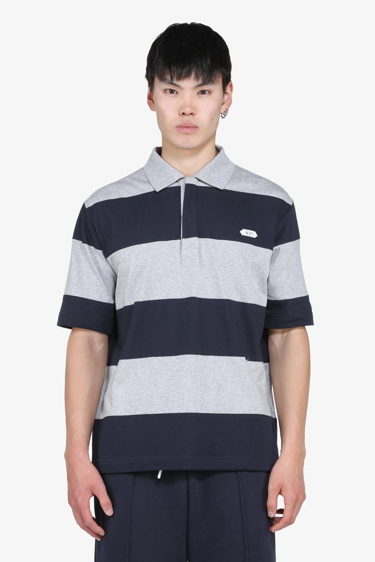 Polo a maniche corte dal taglio regolare di N°21. Presenta righe orizzontali blu navy e grigio chiaro. Colletto classico con bottoni e logo sul petto.