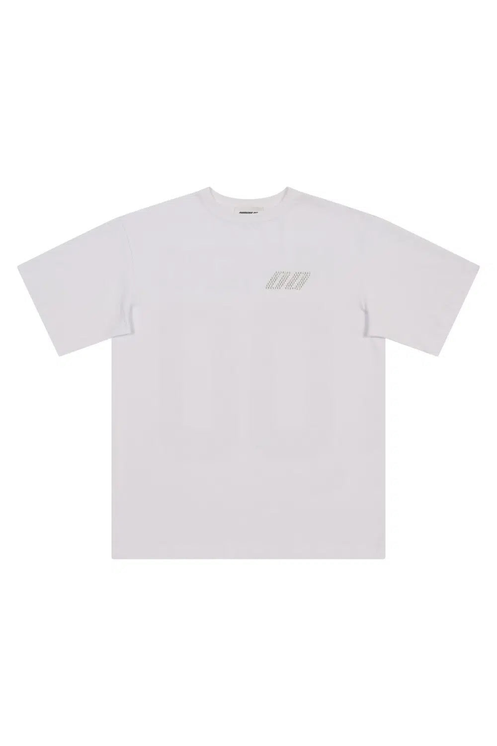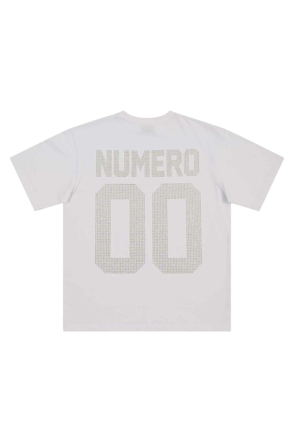 T-Shirt Strobo Effect con logo NUMERO00 strass, che evoca l'intensità delle luci stroboscopiche dei club.