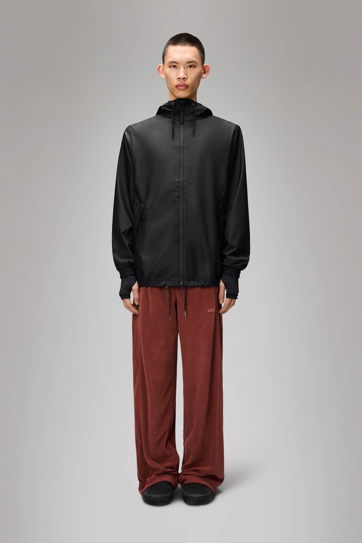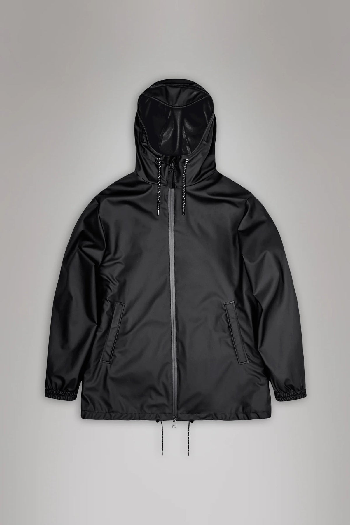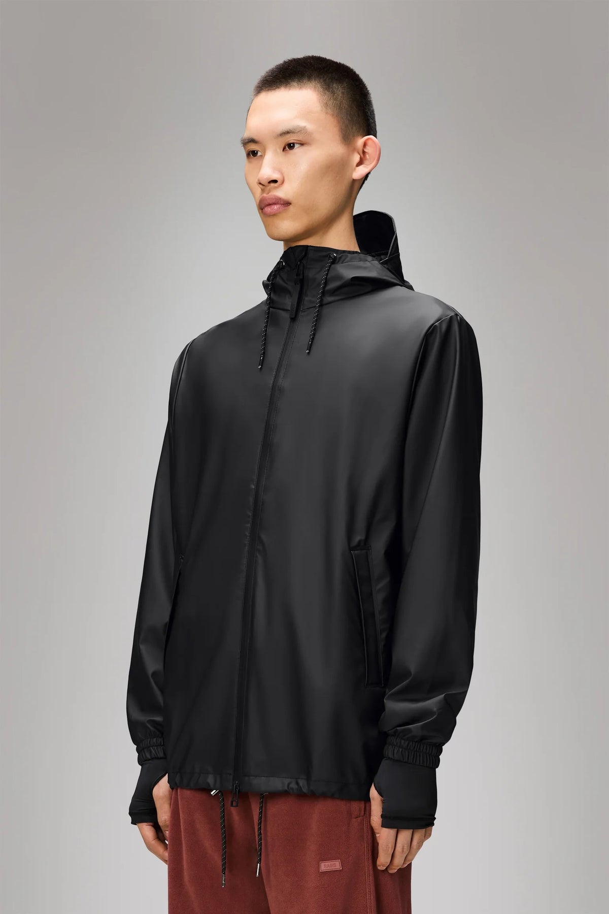 Lo Storm Breaker di RAINS è un impermeabile unisex con un'estetica sportiva raffinata e parti metalliche resistenti agli agenti atmosferici.