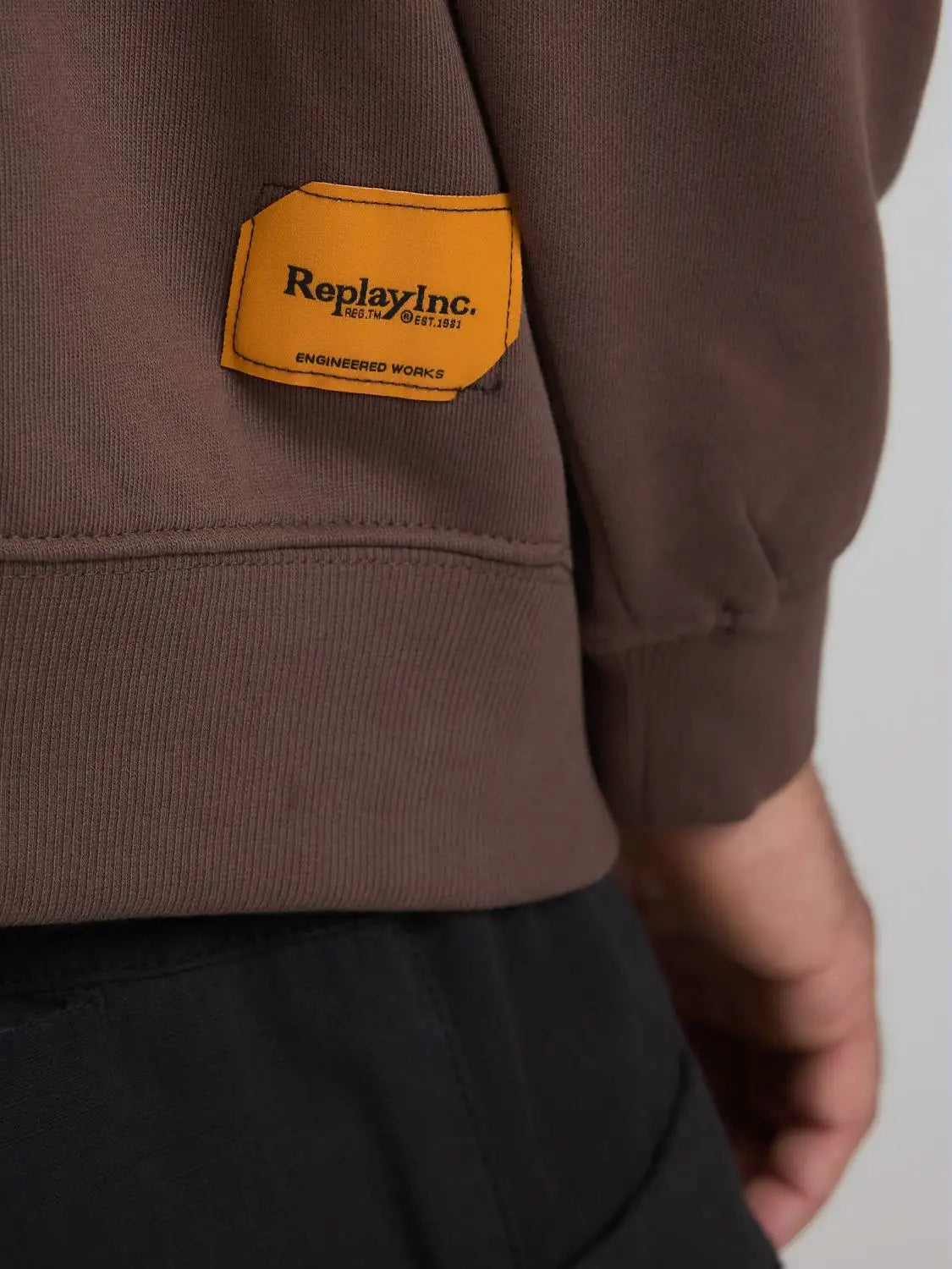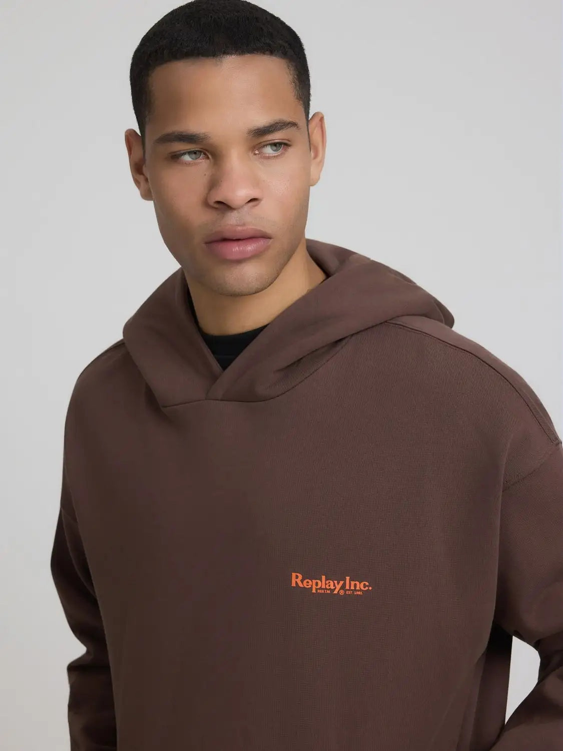 Felpa relaxed fit dotata di cappuccio e realizzata in cotone di REPLAY INC. Il modello con maniche lunghe e spalla scesa è dotato di un cappuccio e di una comoda tasca a marsupio sul davanti ed è caratterizzato dal lettering logato in tono sul petto e dalla patch con il logo della collezione sul fianco. Workwear vibes e animo urban street si uniscono in Replay Inc.: una collezione unisex e versatile creata per rispettare l'unicità di ognuno, all'insegna di una moda inclusiva e autentica.