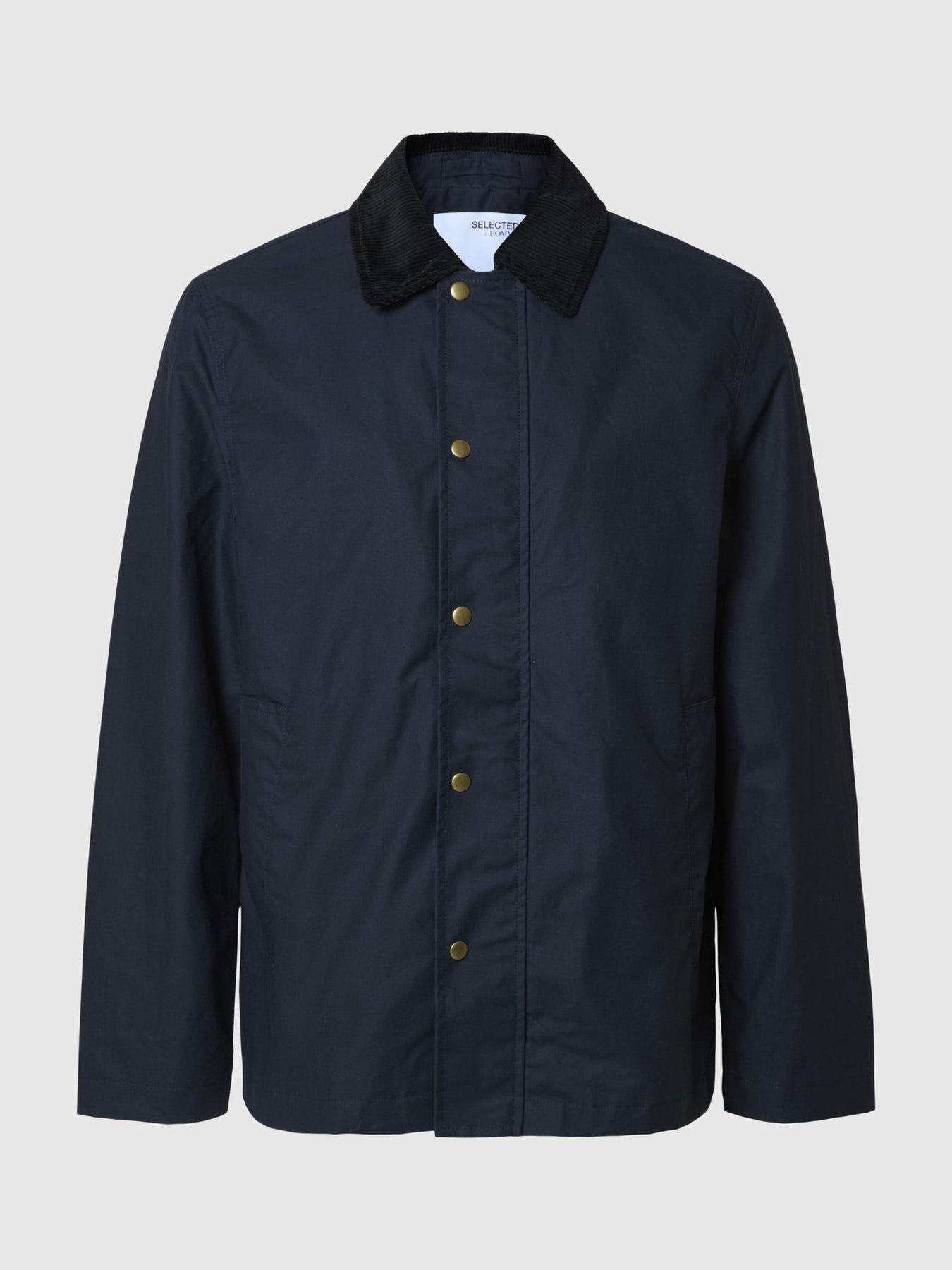 Giubbotto in tessuto pregiato del famoso stabilimento scozzese Halley Stevenssons, con colletto in velluto a coste e la caratteristica finitura cerata idrorepellente di SELECTED HOMME. Completo di cerniera frontale sicura e abbottonatura con bottoni a pressione.